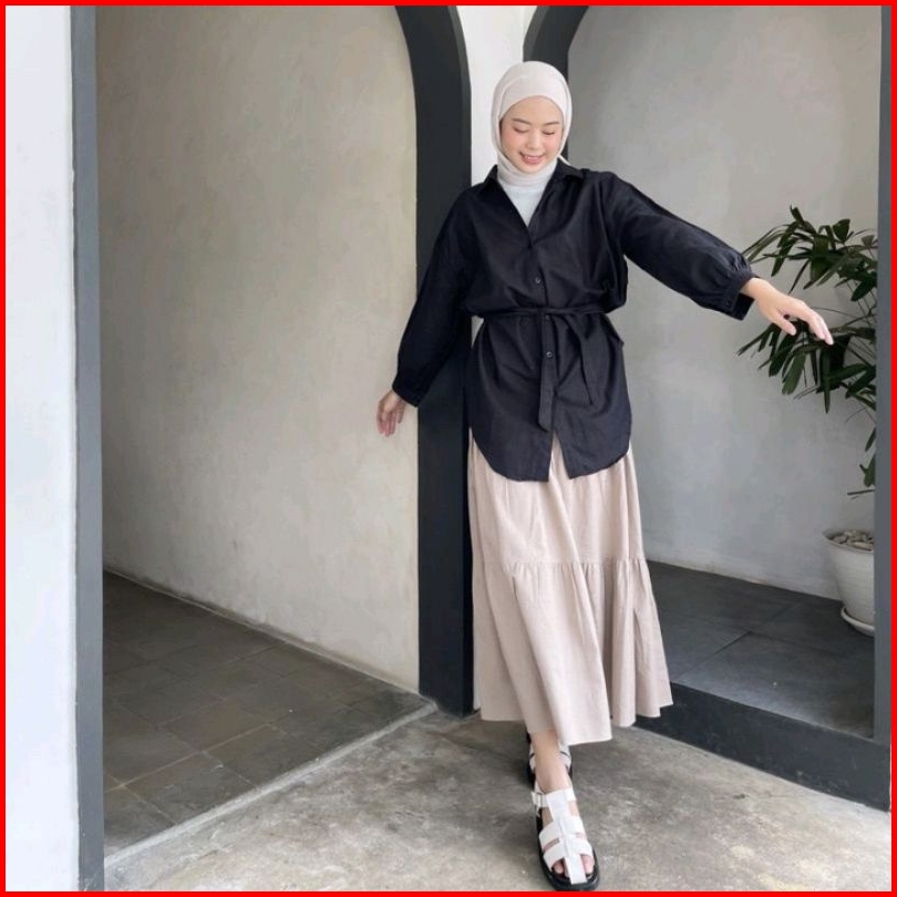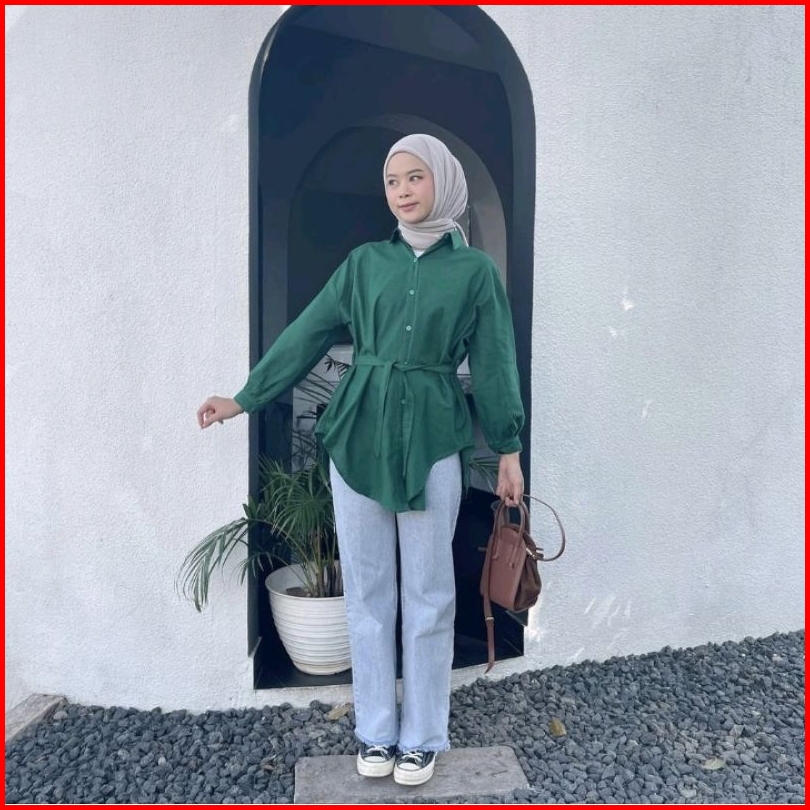 Malka Shirt - Kemeja Oversize Wanita - Oversized Shirt Linen - Atasan Tali Linen