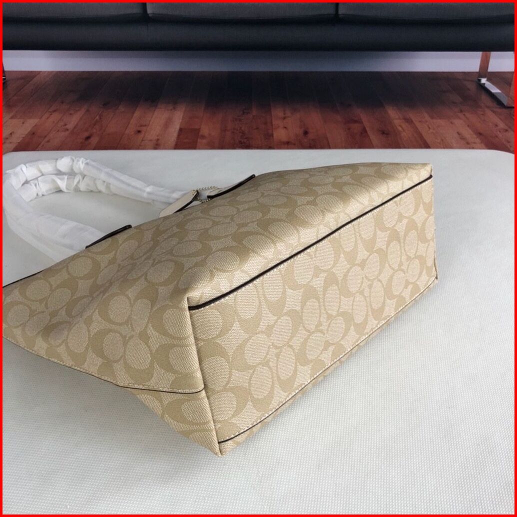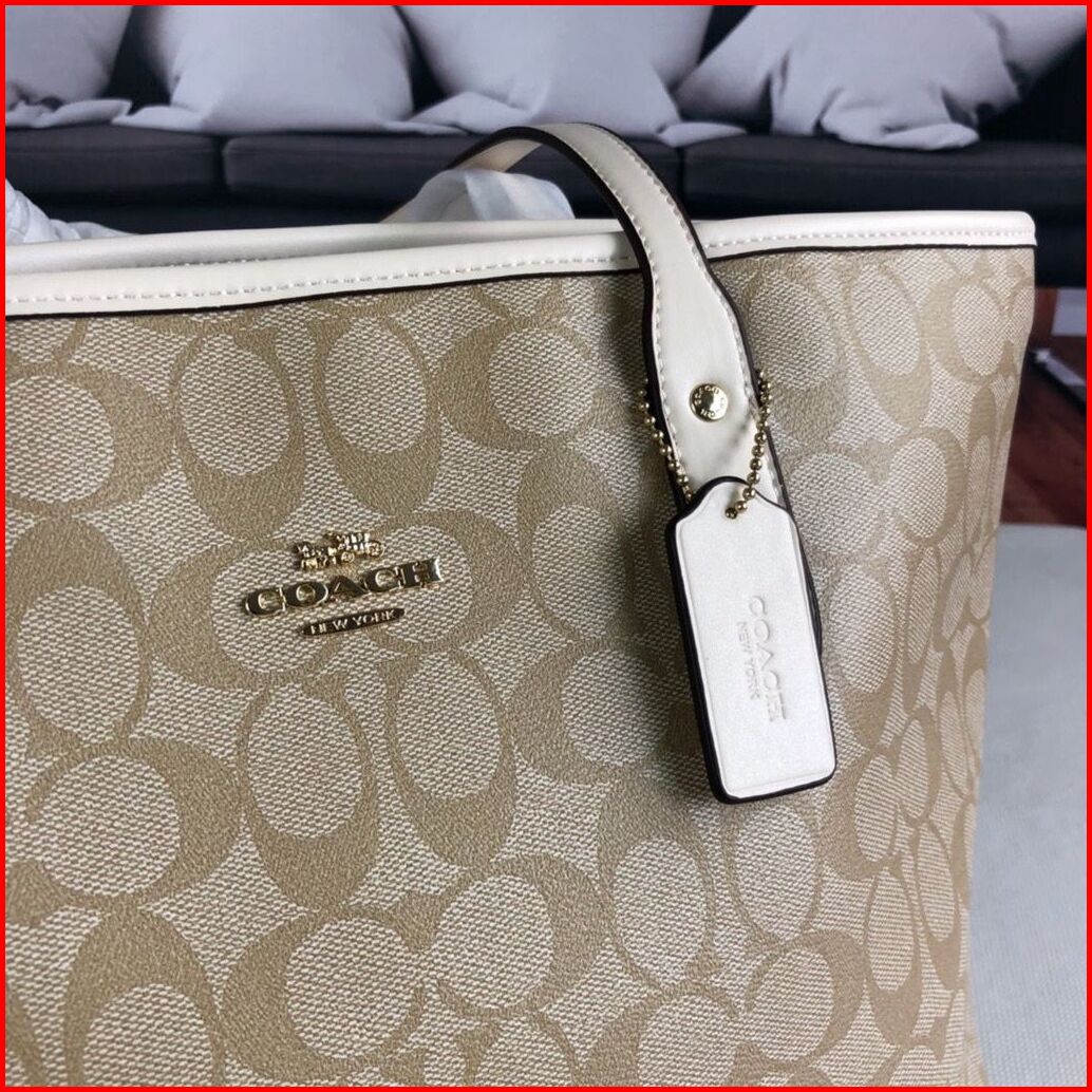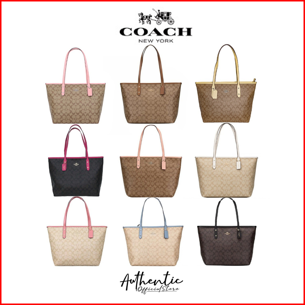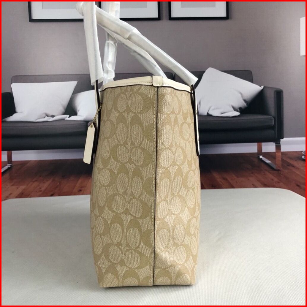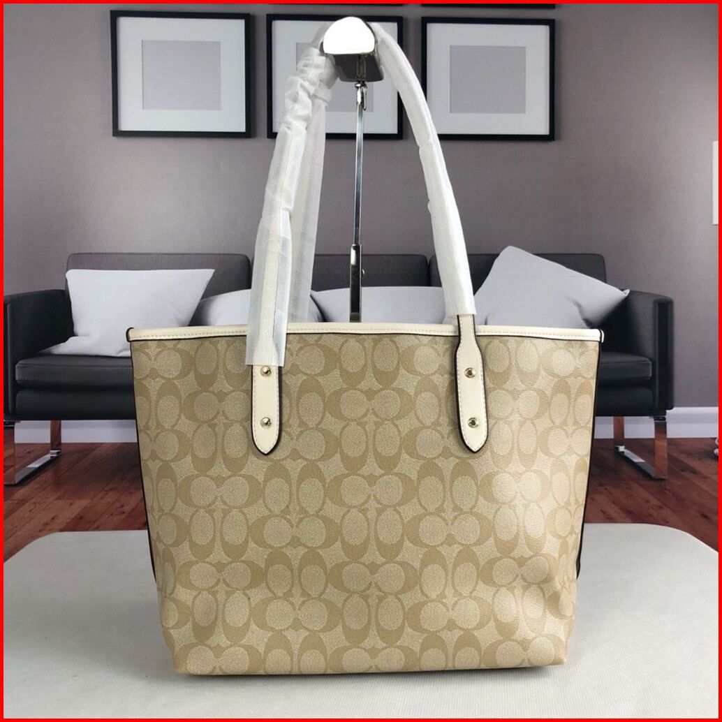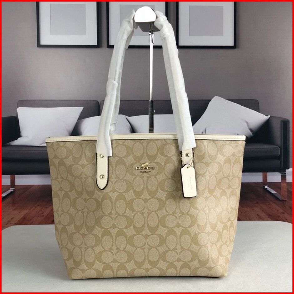 58292 Coach Women City Zip Tote Bag In Signature Canvas Leather Shoulder Bag 001