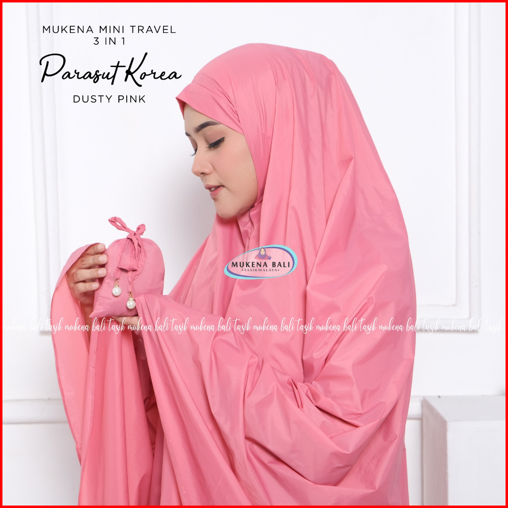 Mukena Bali Tasik - Mukena Dewasa 3 In 1 Travel Mini Parasut Korea Free Sajadah Muka
