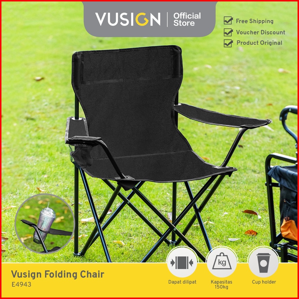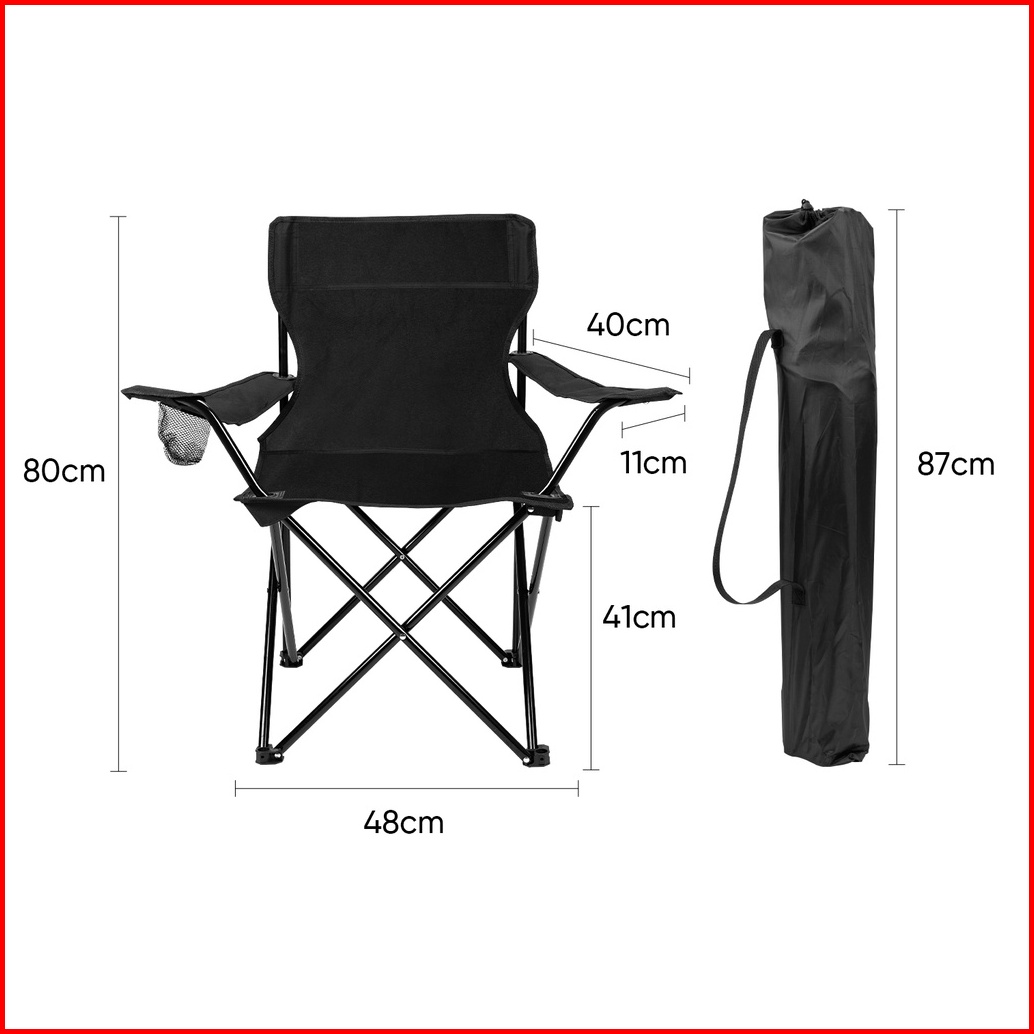 Deli Folding Chair Kursi Lipat Camping Outdoor Mancing Portable Dilengkapi Cup Holder Kapasitas 150kg E4943