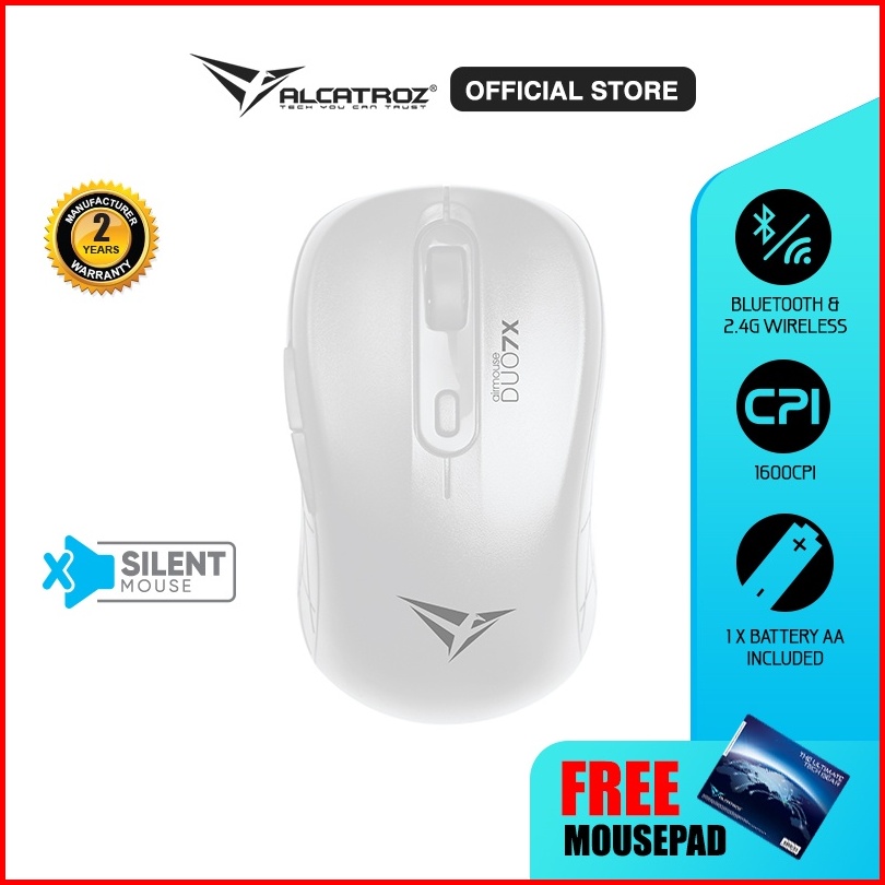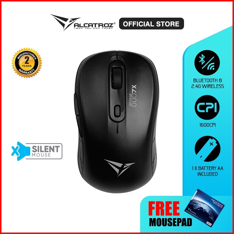 Mouse Wireless Blueooth 5.0 Alcatroz Airmouse Duo 7x Silent Click 2.4g Wireless Garansi Resmi 2 Tahun
