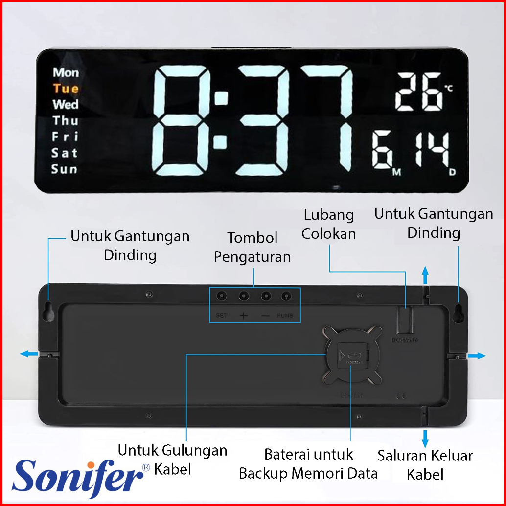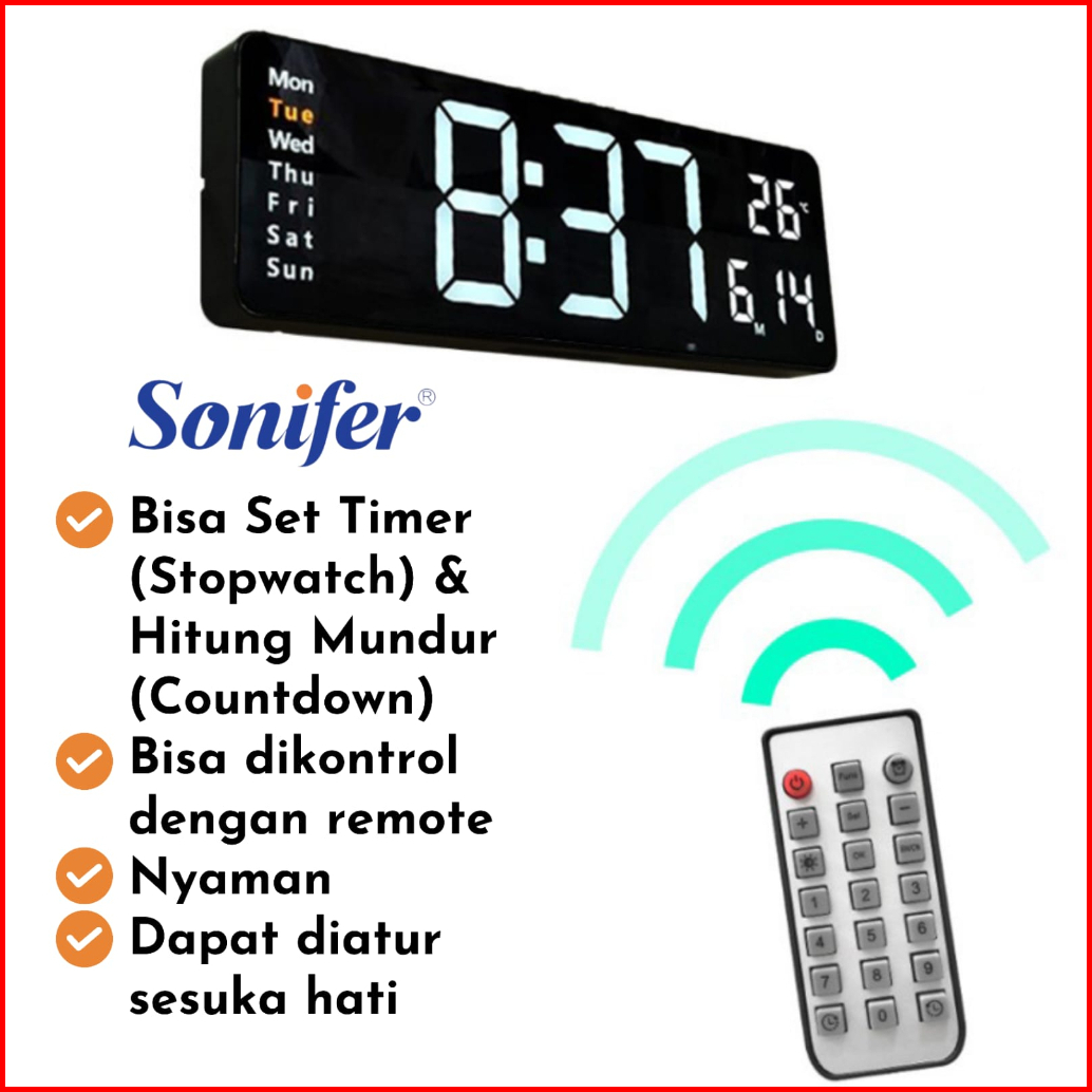 Sonifer Jam Dinding Timer Countdown Digital Led 39 X 13 Cm