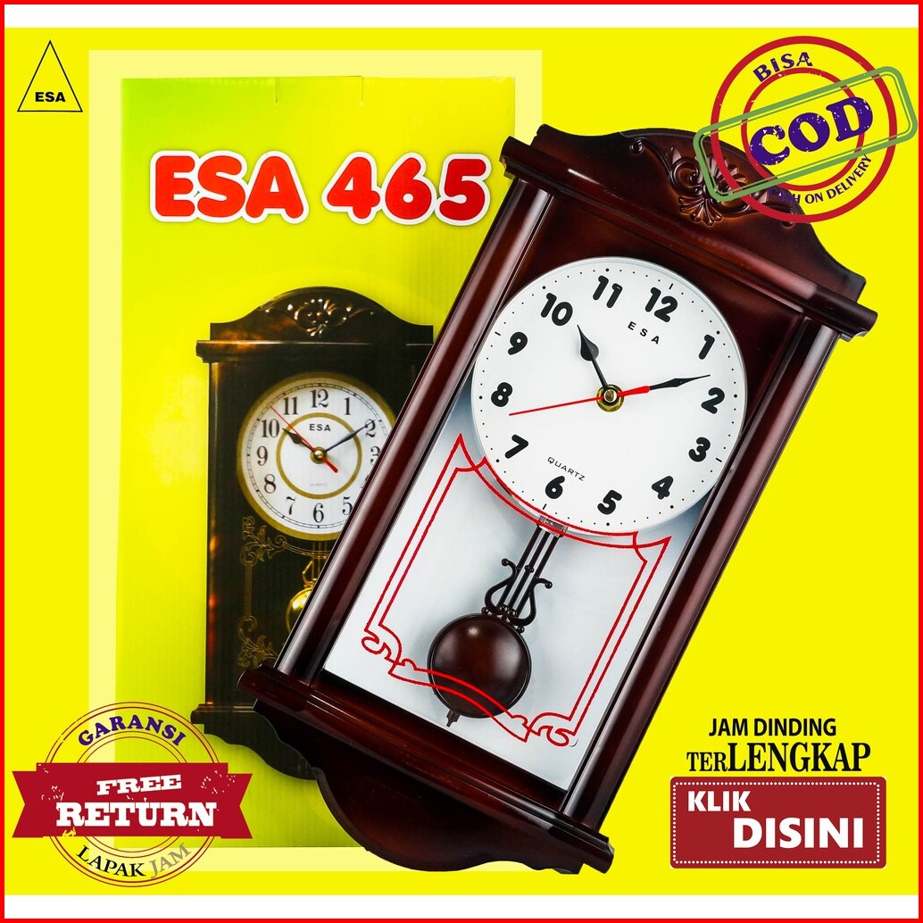 Jam Dinding Esa 465 Dengan Bandul Goyang Quartz Dimensi 46 Cm Bagus