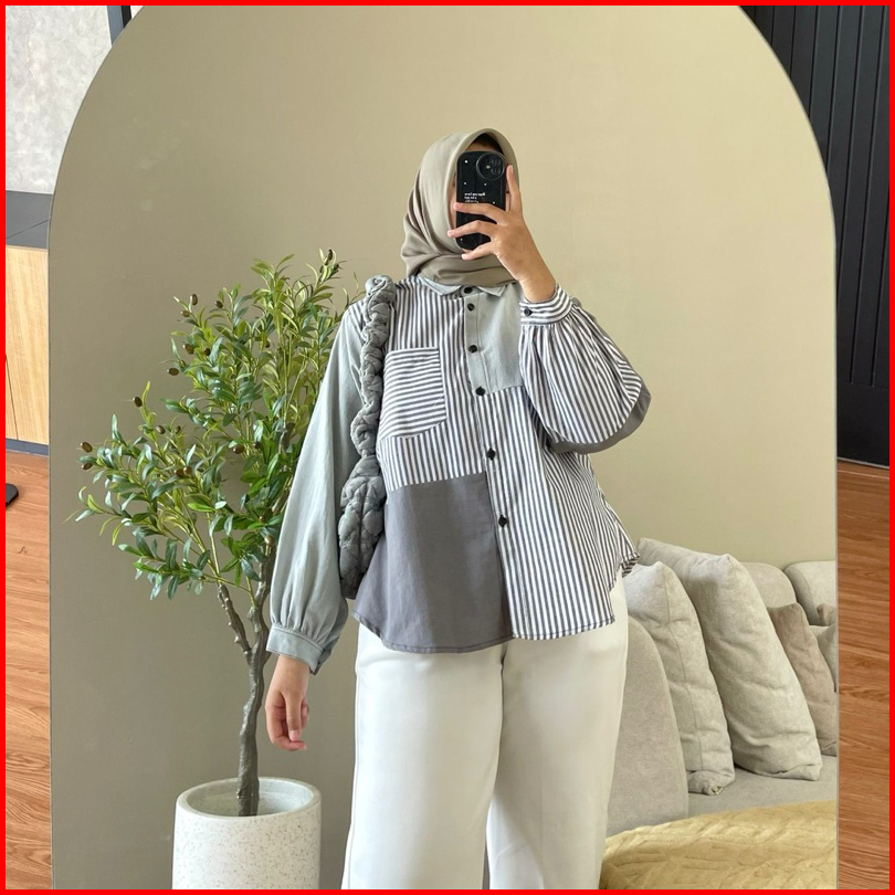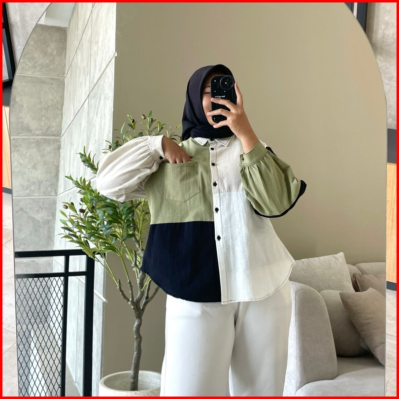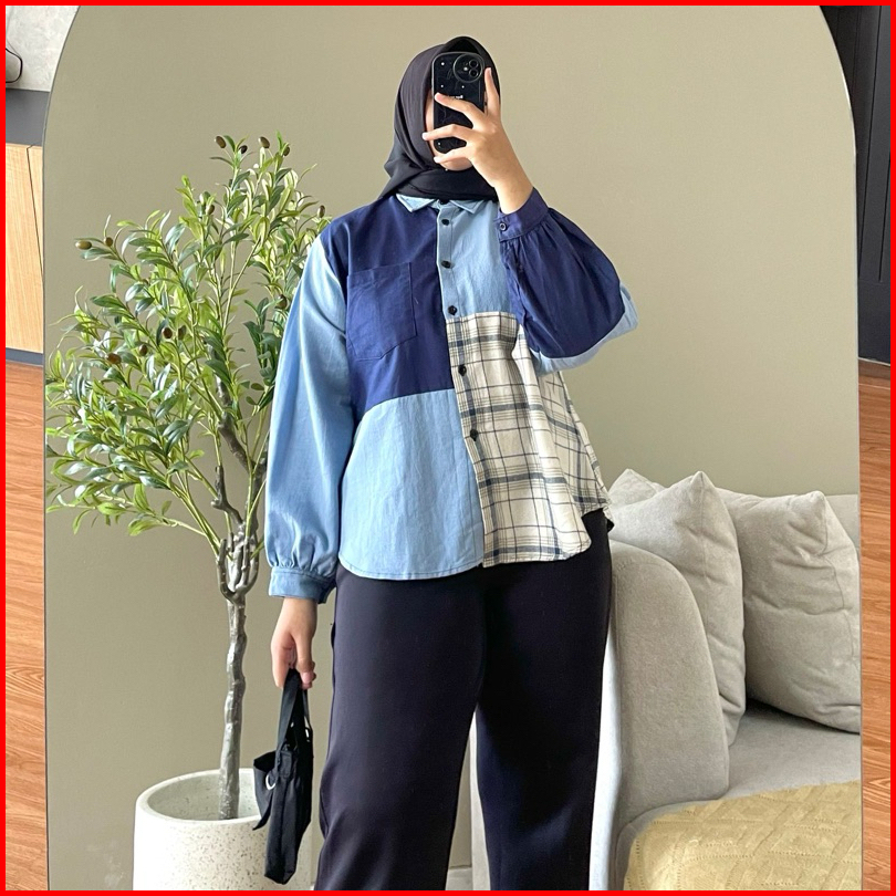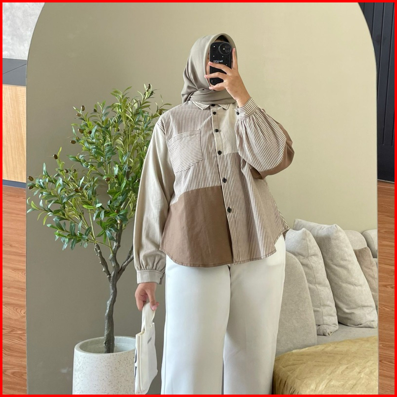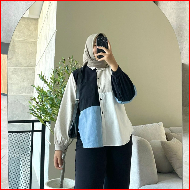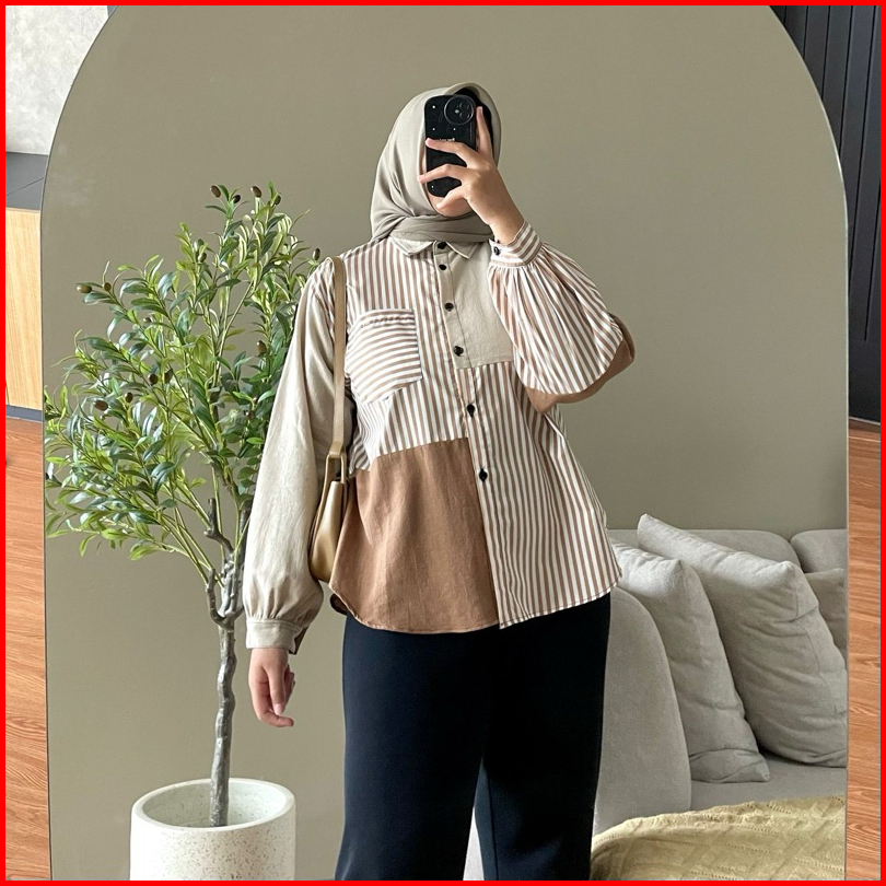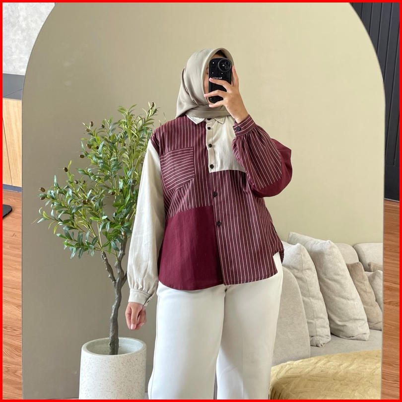 Hanako 687 Kemeja Oversize Linen Kombinasi Kemeja Wanita