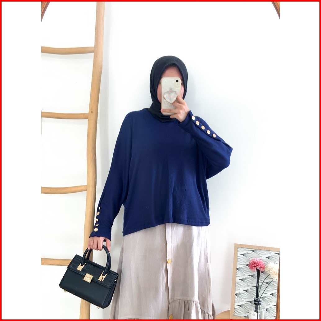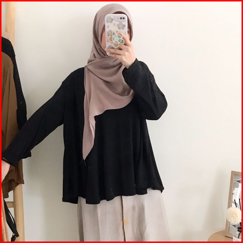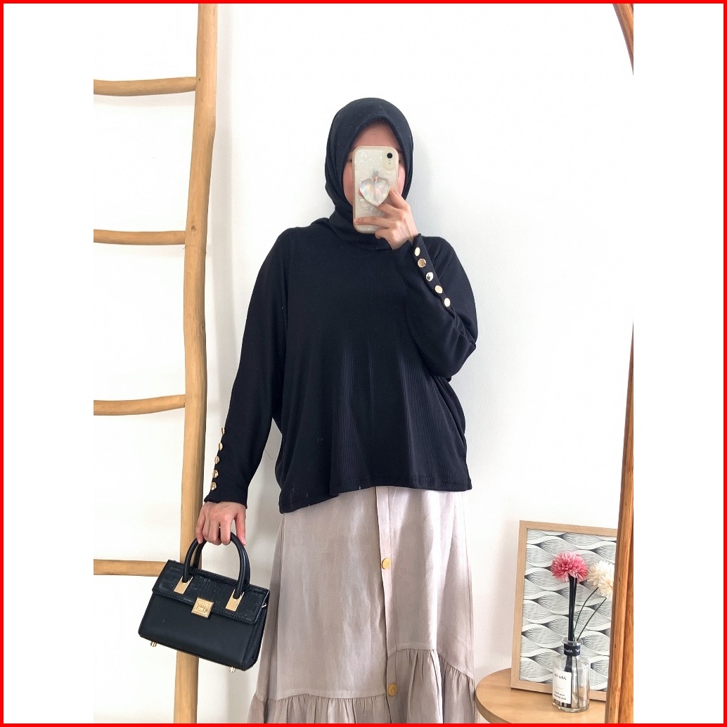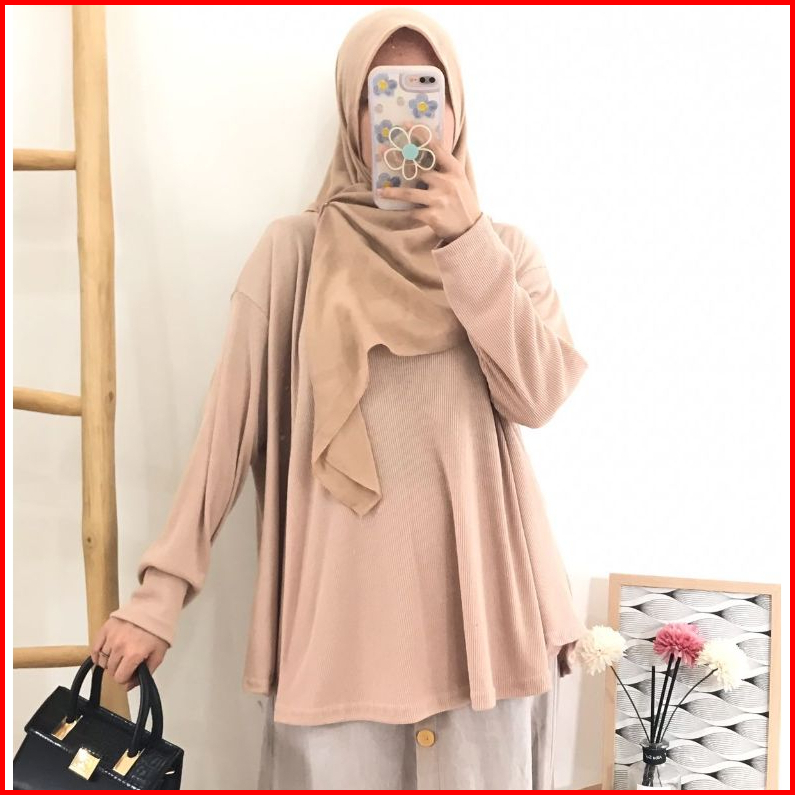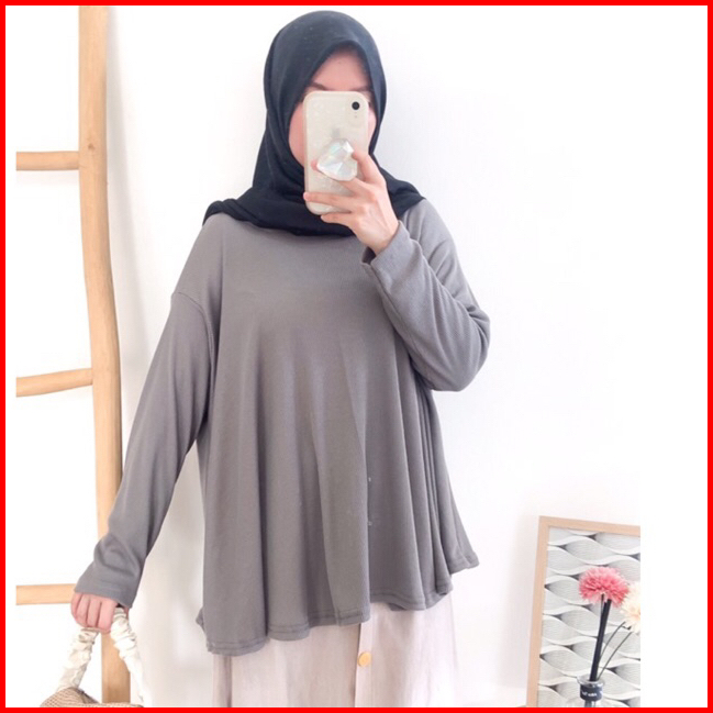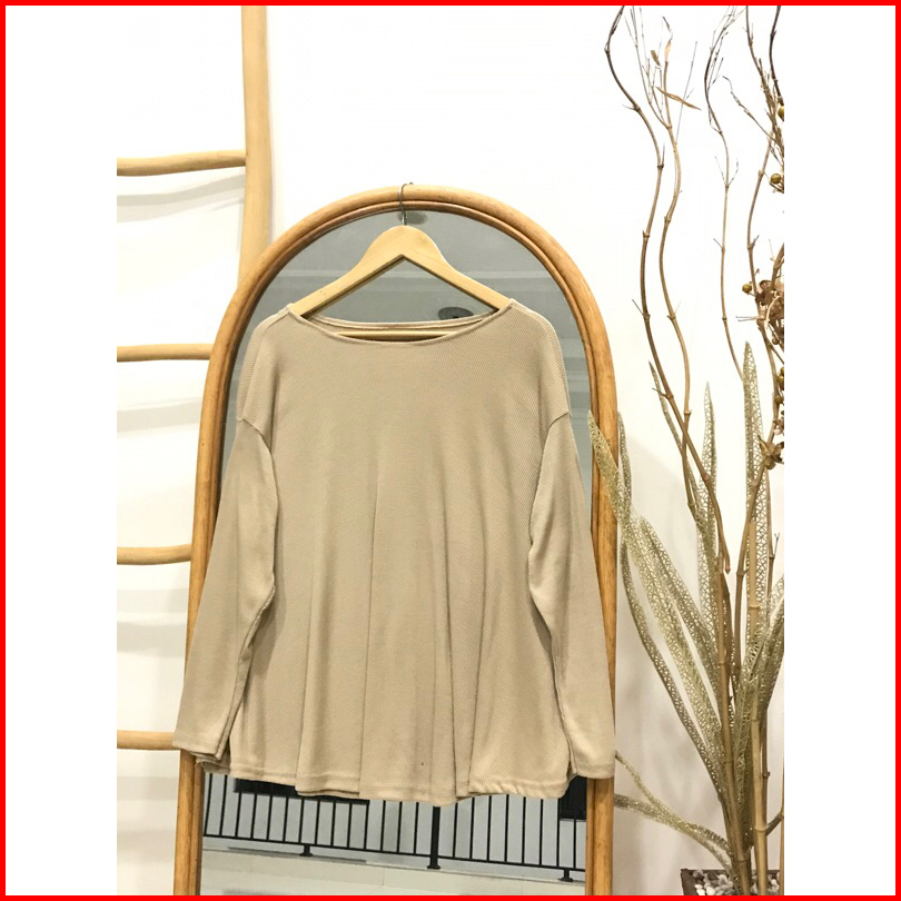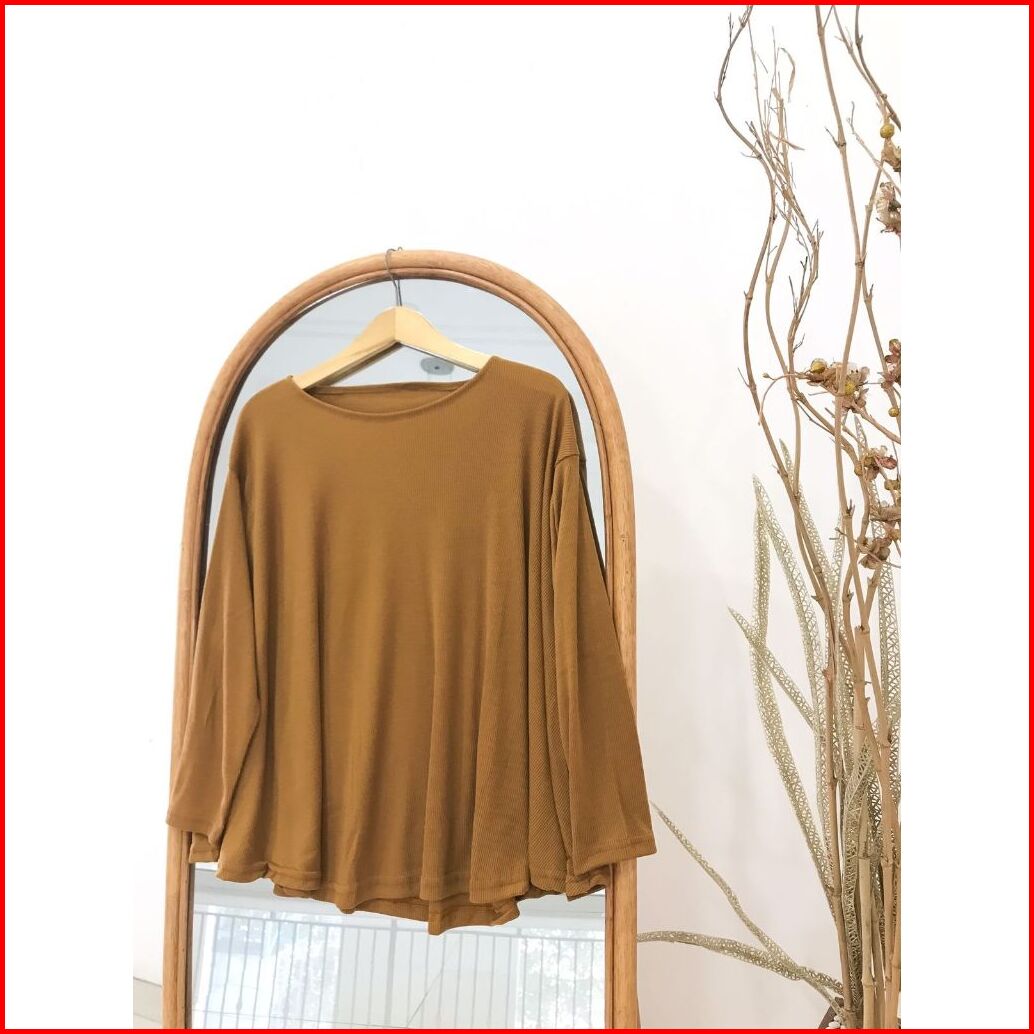 Luna Rib Knit Top Kaos Katun Rib Polos Oversize Blus Premium