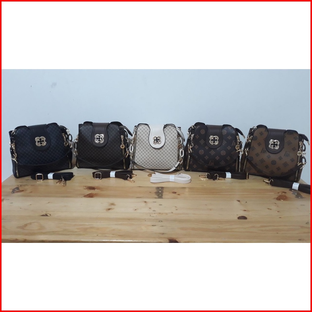 Bj60320 - Beige Black Coffee Flower Brown Flower Coffee - Tas Slempang Wanita Fashion Import Modis Elegan Termurah Terla