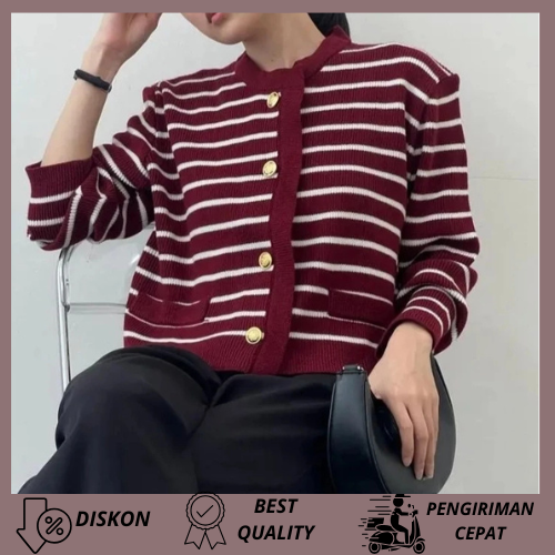 Cardigan Cesy Knitwear Premium Atasan Wanita korean style Casy Cardi Strip Long Cardigan Wanita Korea Kekinian Murah