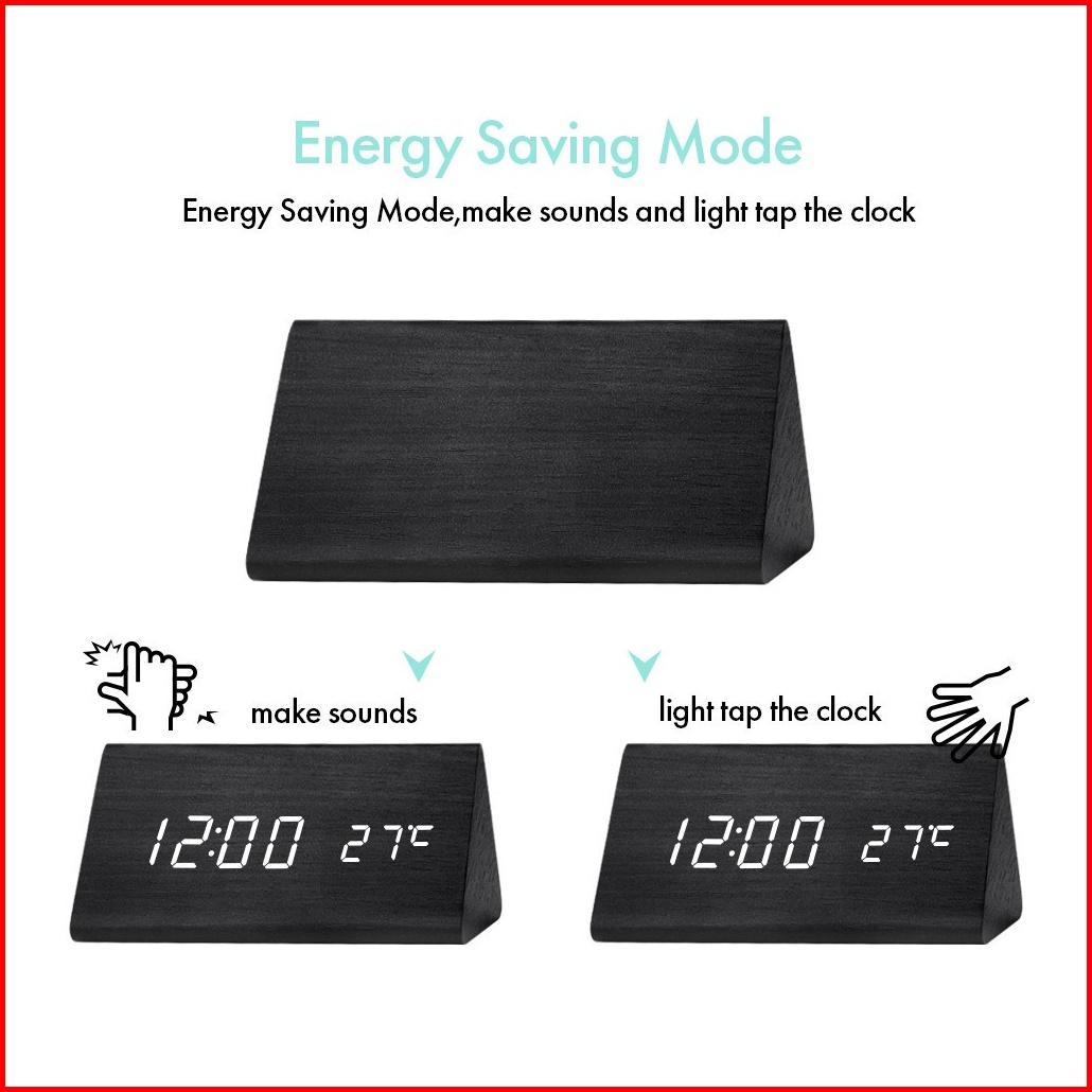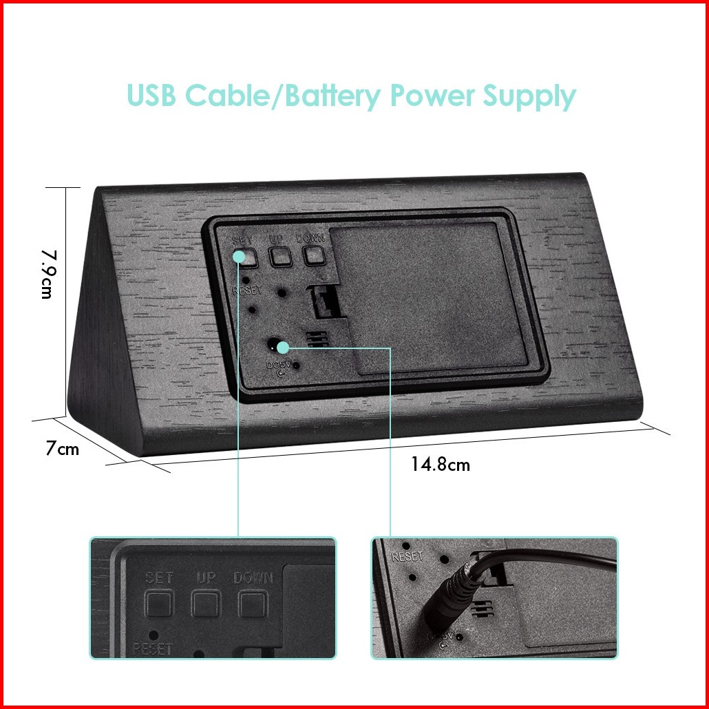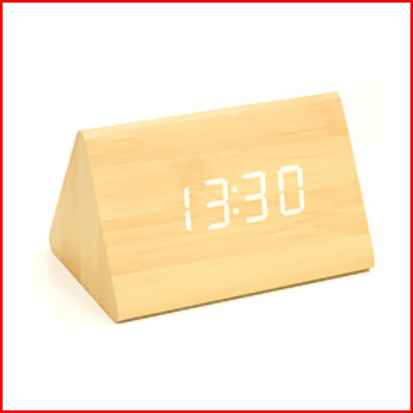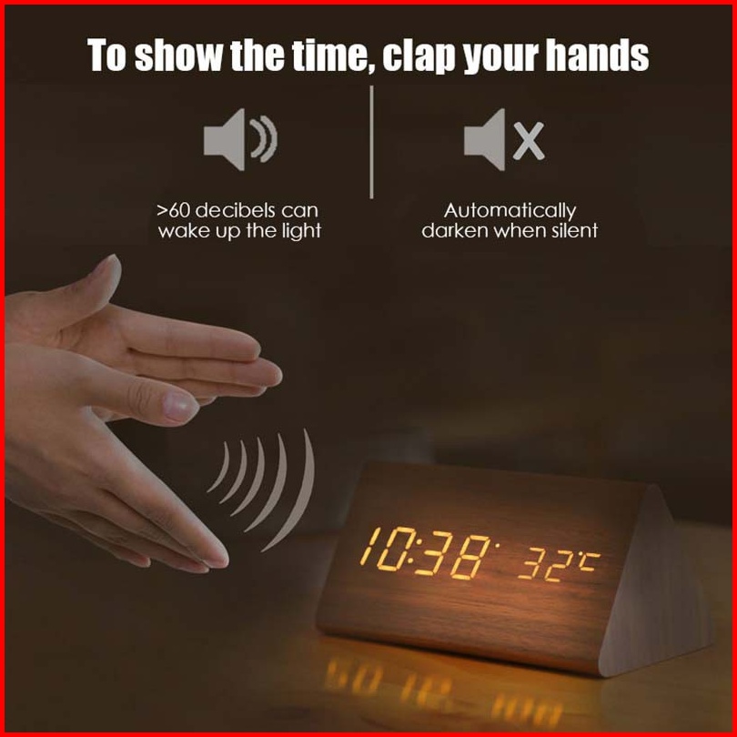 Jam Meja Digital Led Motif Kayu Jam Meja Kayu Alarm Temperatur Digital Triangle Jam Estetik Suhu