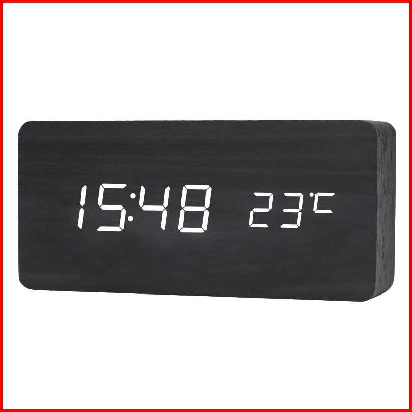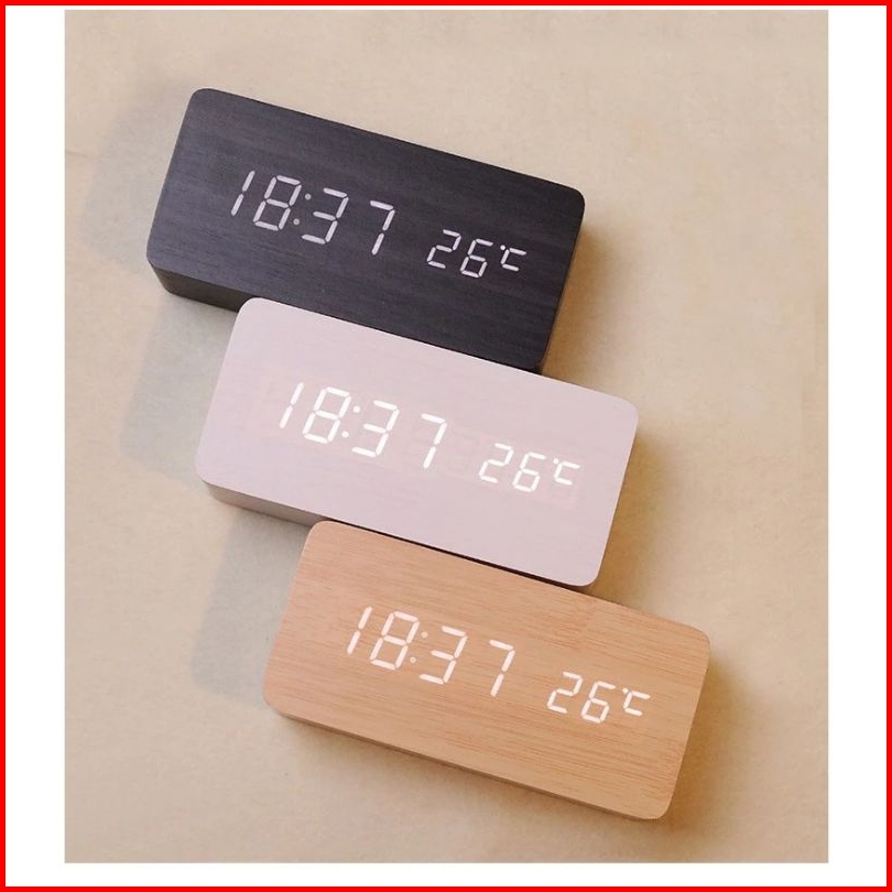 Jam Meja Kayu Digital Led Jam Estetik Suhu Digital Wood Smart Alarm Estetik Jam Weker Bunyi Alarm Di Tepuk Tangan Langsu