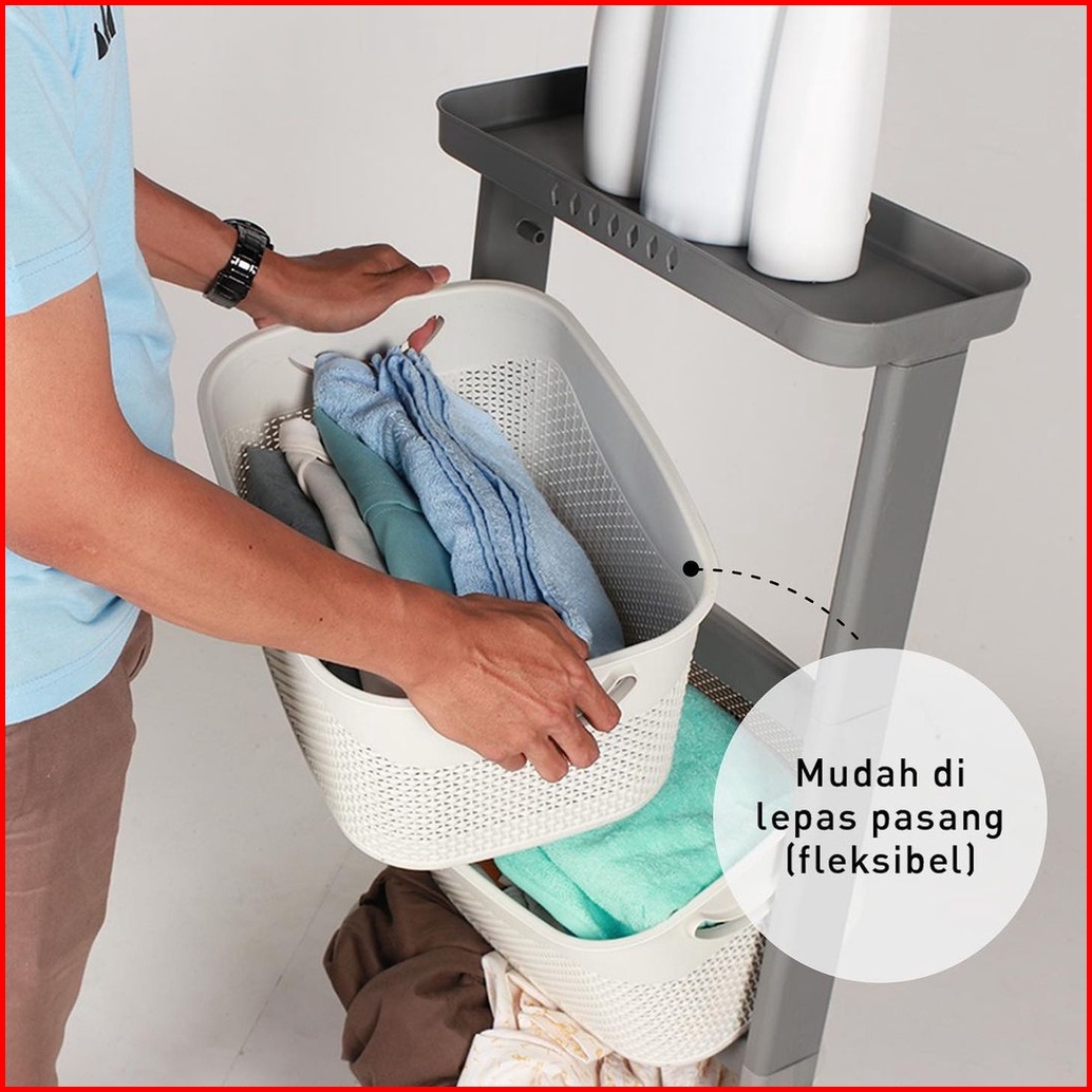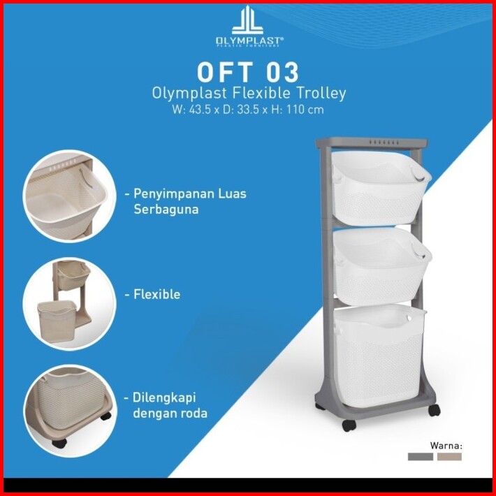 Laundry Basket Plastik Olymplast Susun 3 Rak Serbaguna Oft