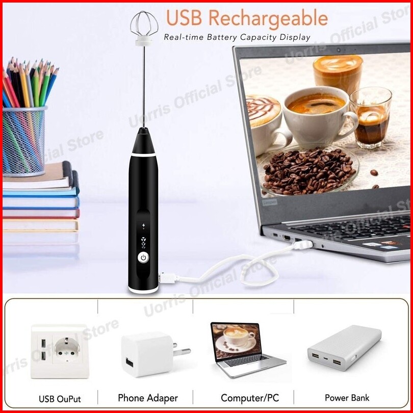 Pembuih Susu Pengocok Telur Handheld Blender Milk Frother Electric Mixer 1500mah Portable Egg Beater Usb Rechargeable