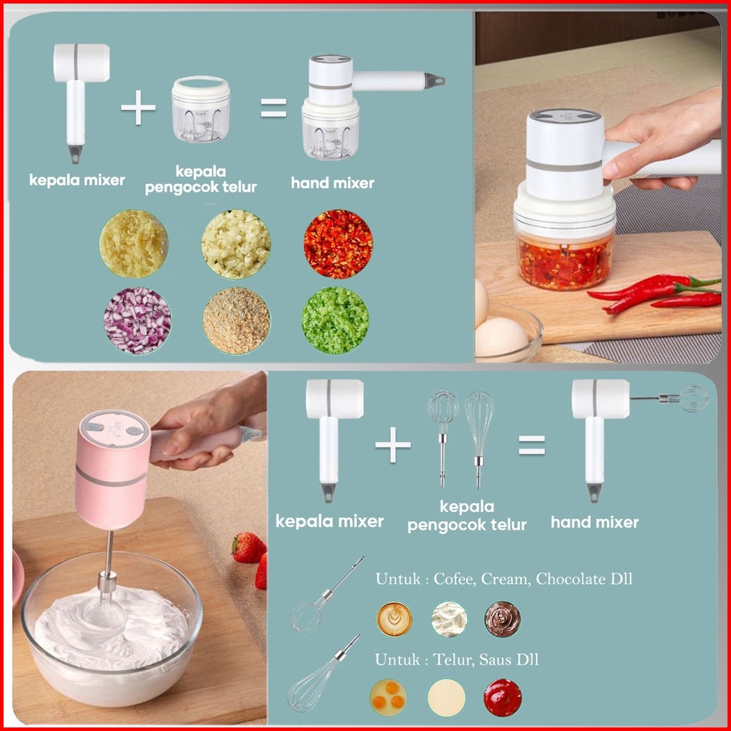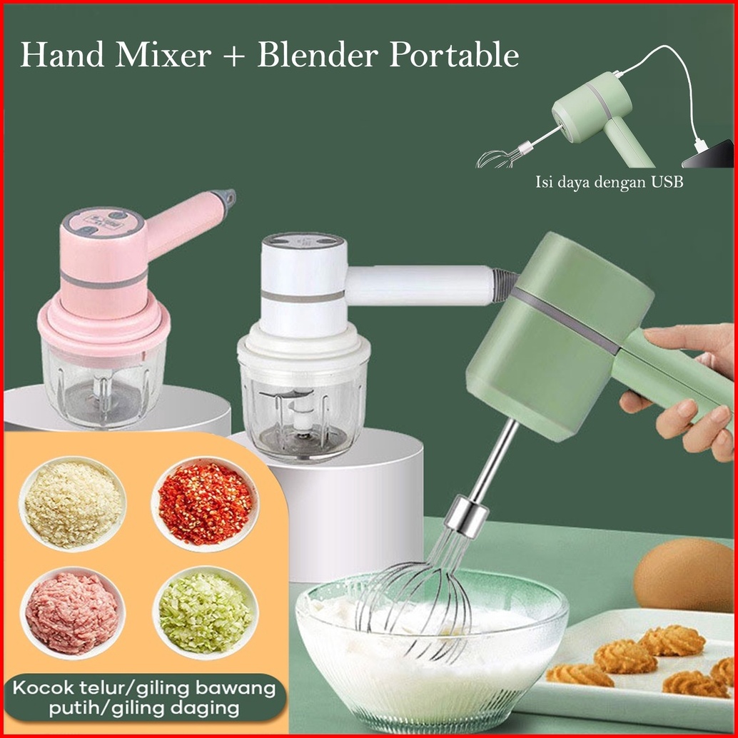 Blender 3 In1 Mixer Hand Mixer Portable Blender Pengocok Telur Elektrik Wireless Serbaguna