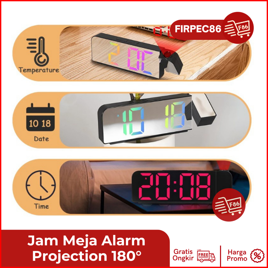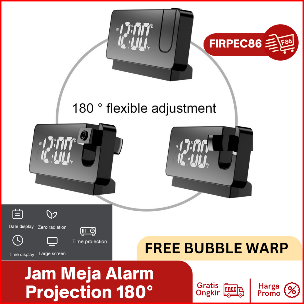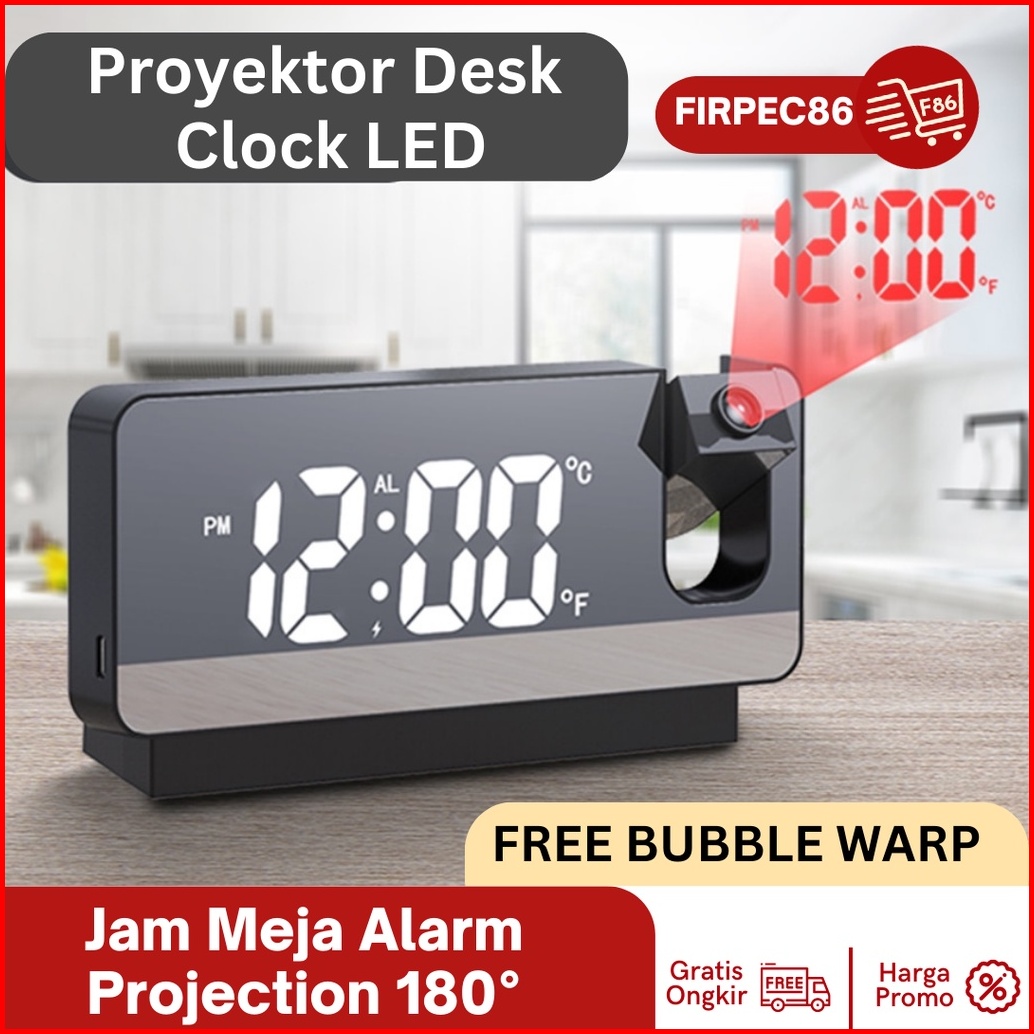 Jam Meja Unik Proyektor Desk Clock Led Digital Alarm Projection 180