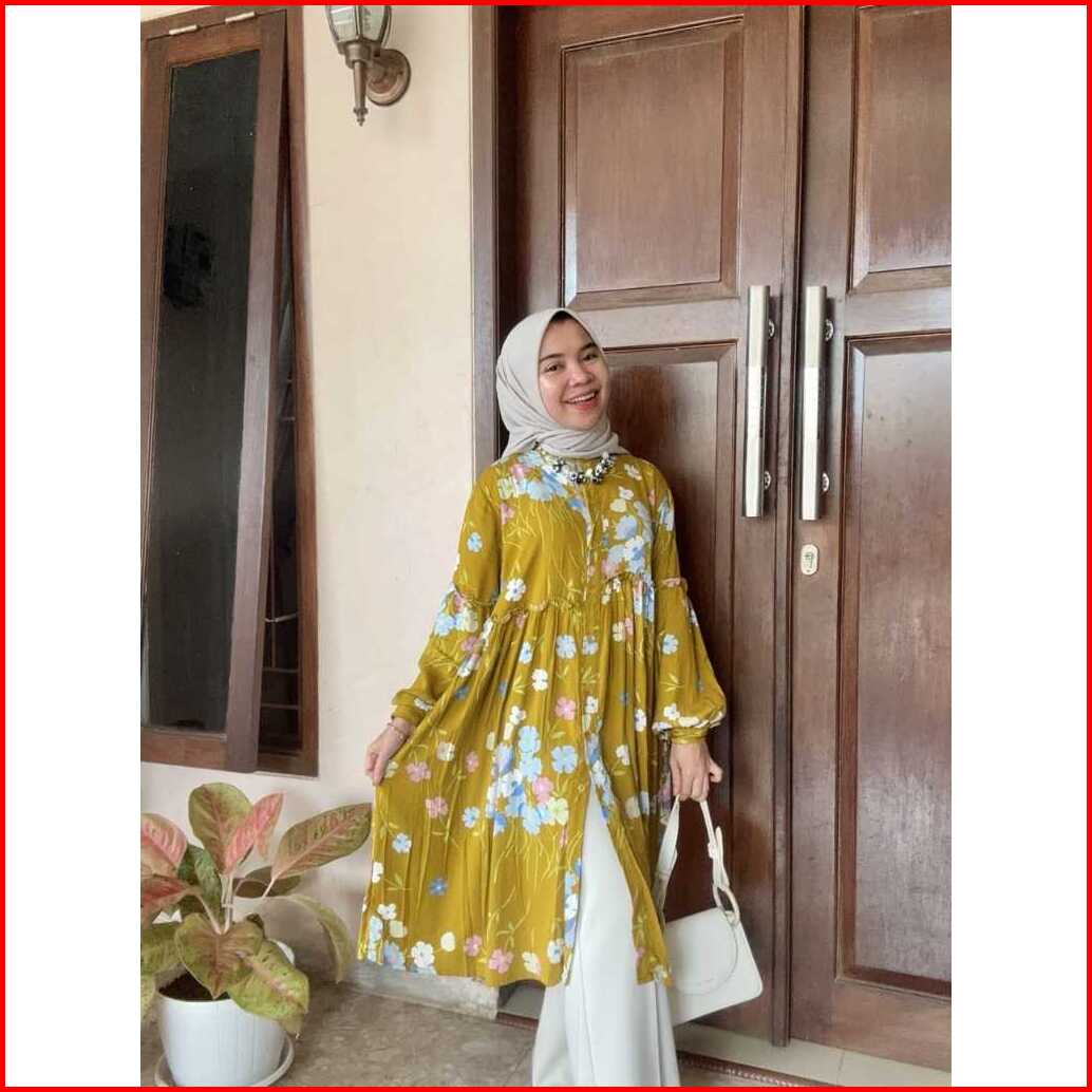Ameena Tunik Rayon Dada Kancing Lengan Balon