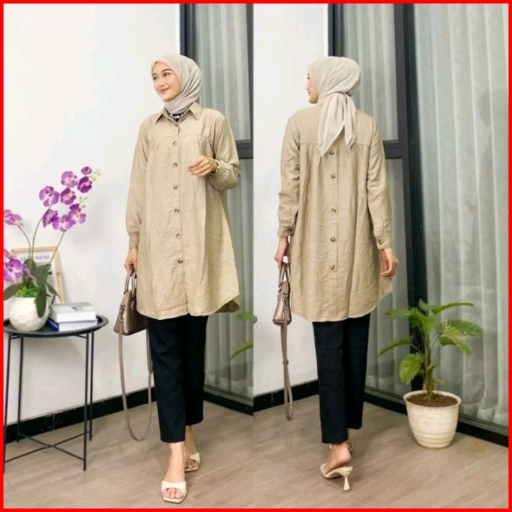 Zeva Tunik Polo Linen - Atasan Wanita Tunik Polo Linen Variasi Kancing Belakang