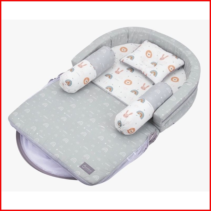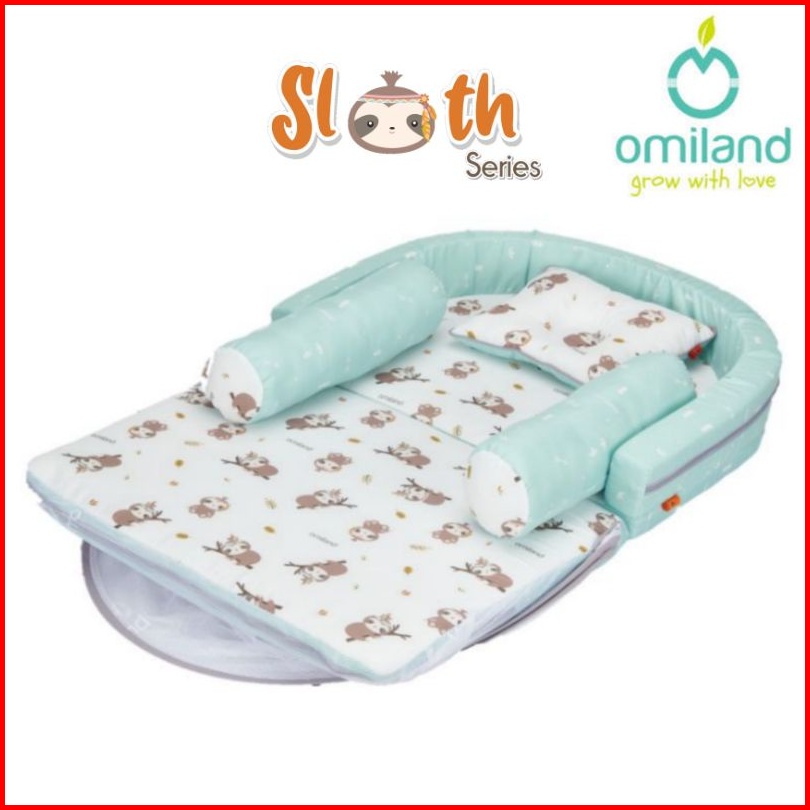 Omiland Kasur Bayi Lipat Bumper Kelambu Extra Perlak Alpaca Panda Sloth Rainbow Series