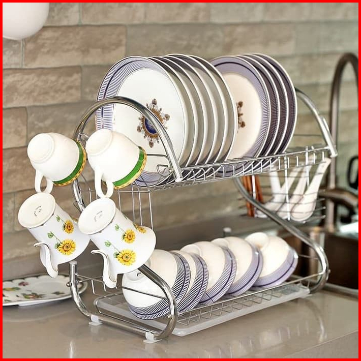 Rak Piring Stainless 2 Tingkat Rak Dapur Gelas Rak Sendok Rak Serbaguna Rak Piring