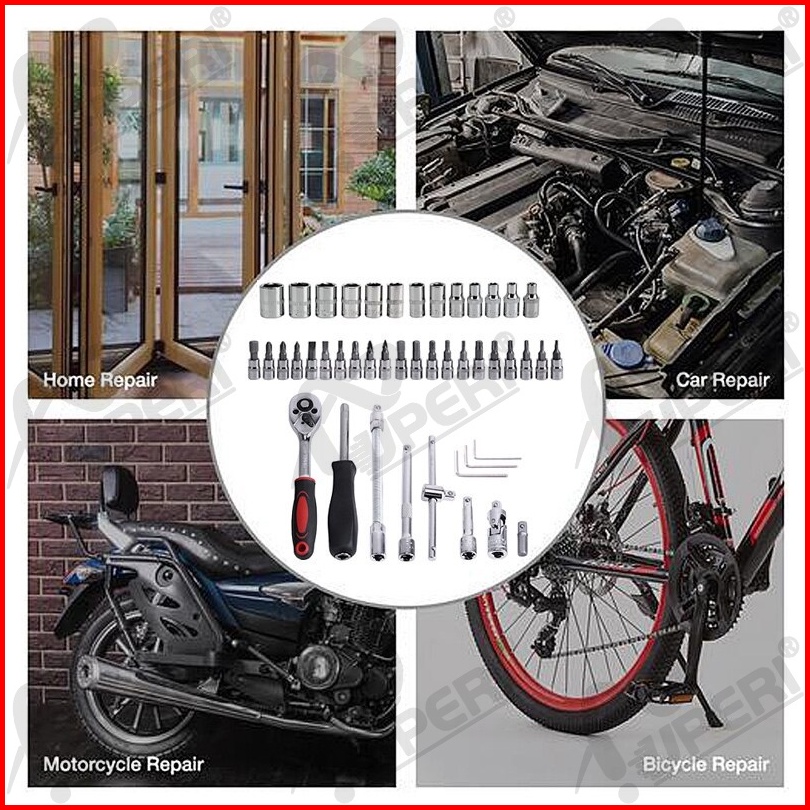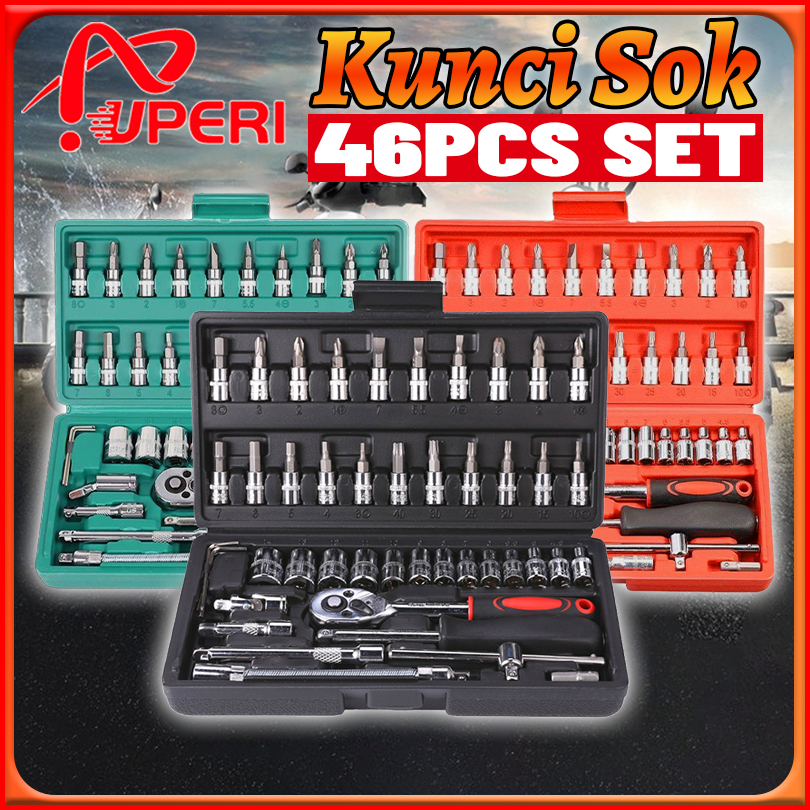 Set Kunci Socket 46 Pcs Full Set 1 4 Pas Ring L Motor Kunci Kunci L Set Cr-v Lengkap Kunci Ring Pas 1 Set Lengkap