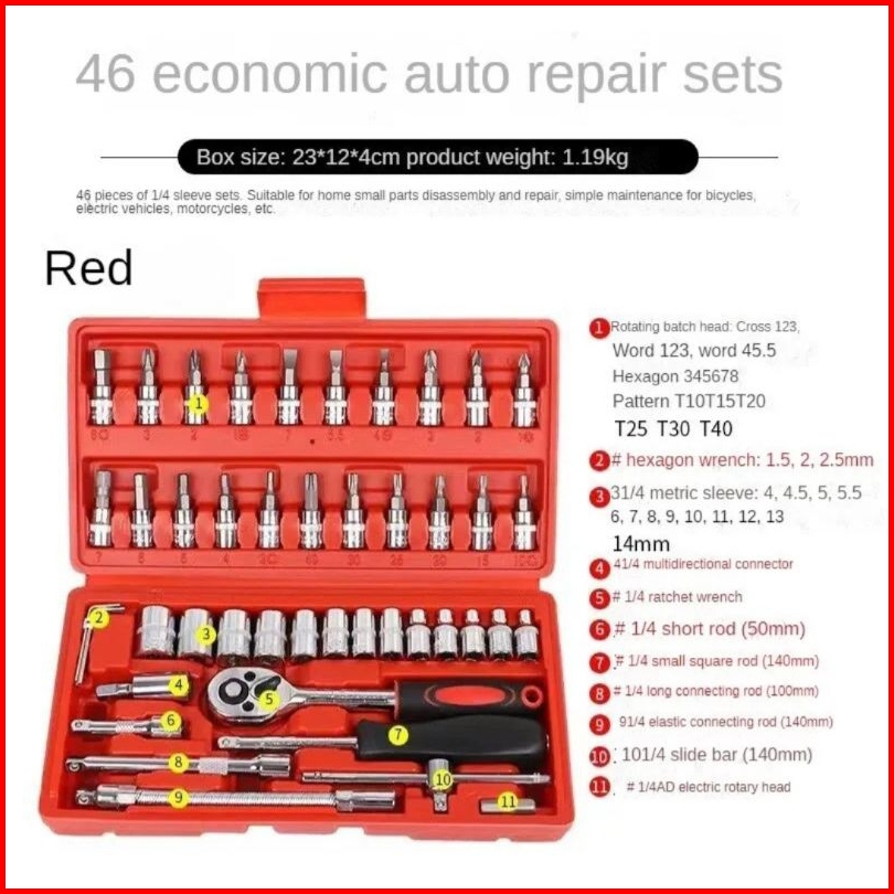 Kunci Socket 46 Pcs 1 4 Obeng Shock Tool Kit Set