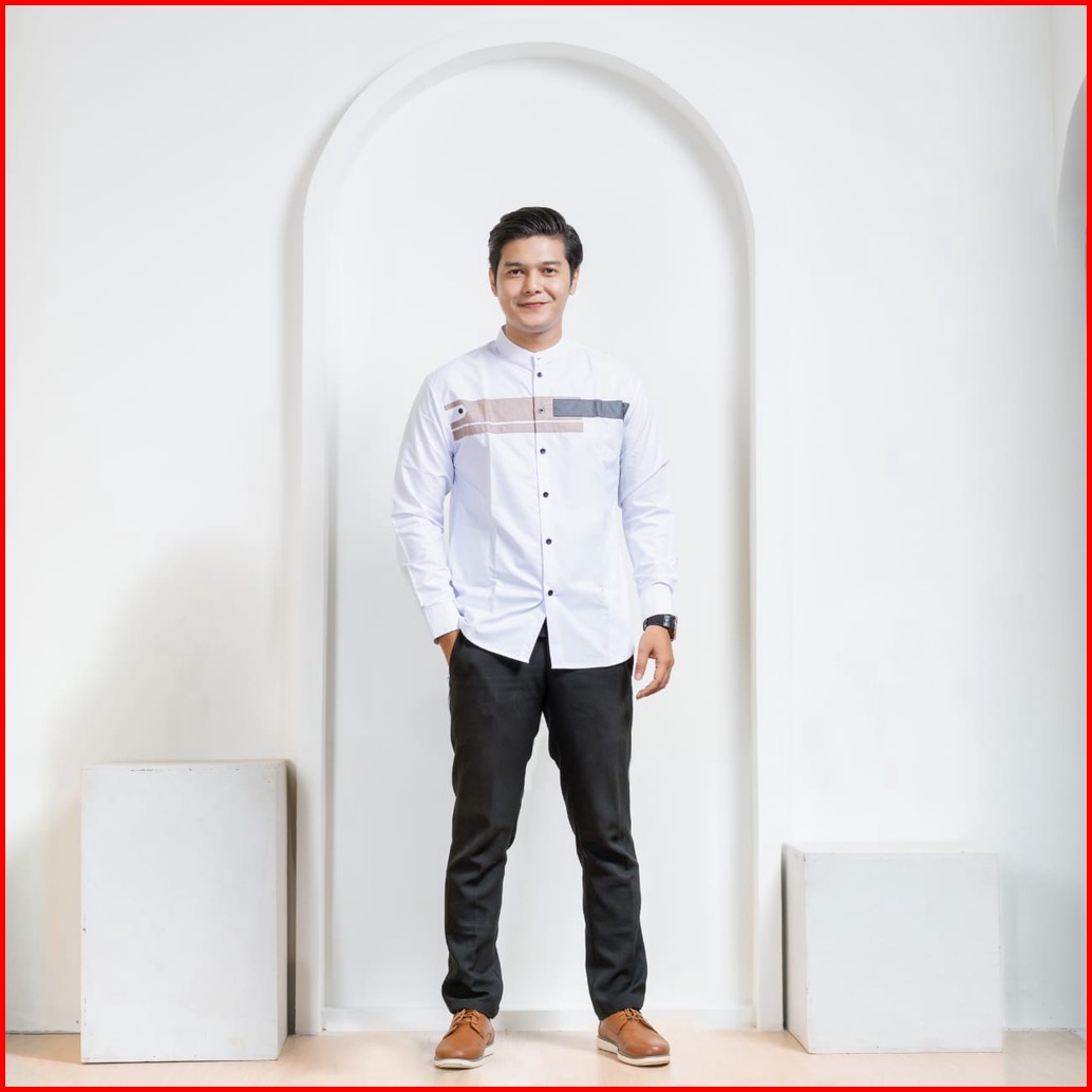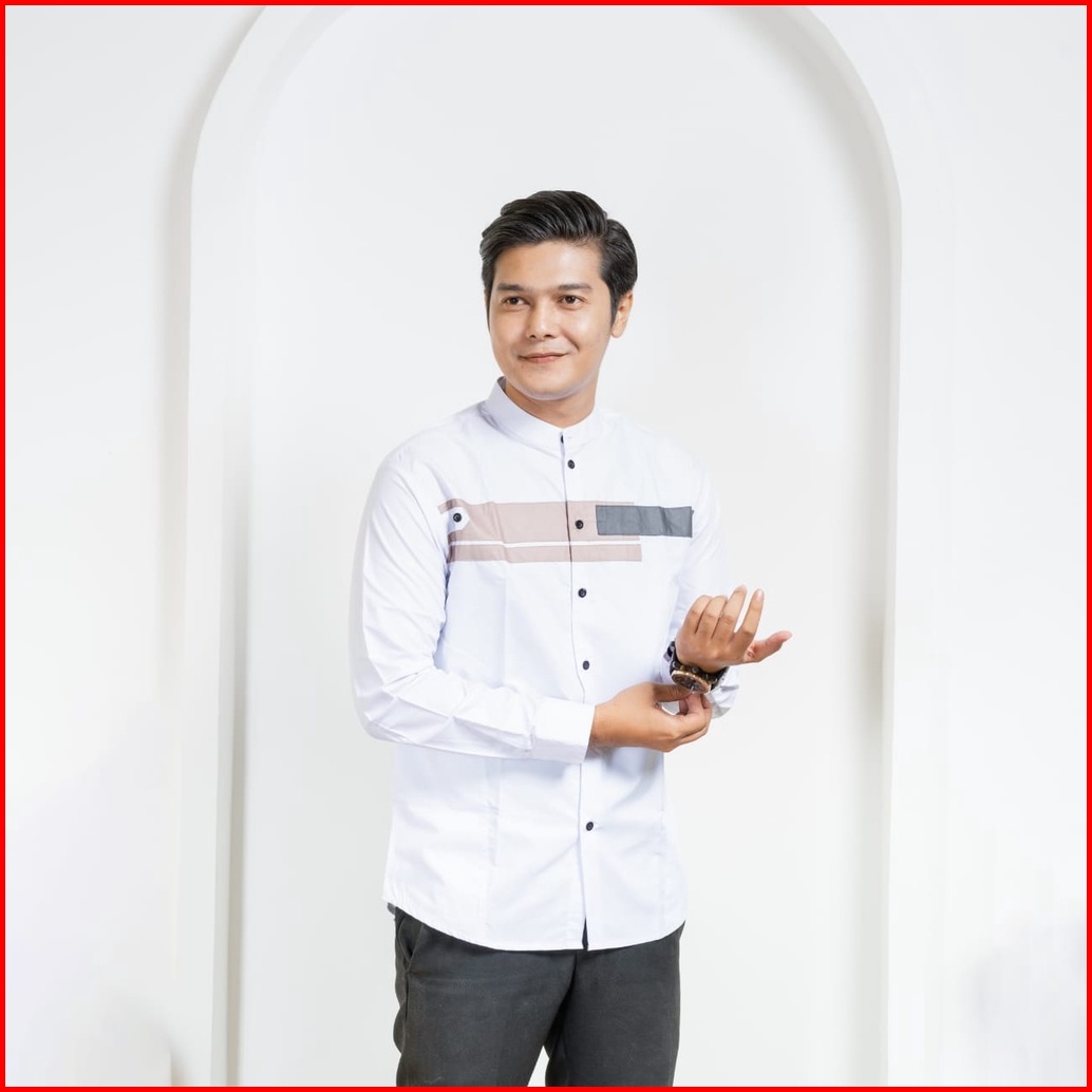 Asakhi - Baju Koko Pria Hadroh Kombinasi Motif Yordan Lengan Panjang Warna Putih M L Xl