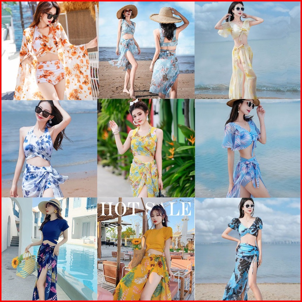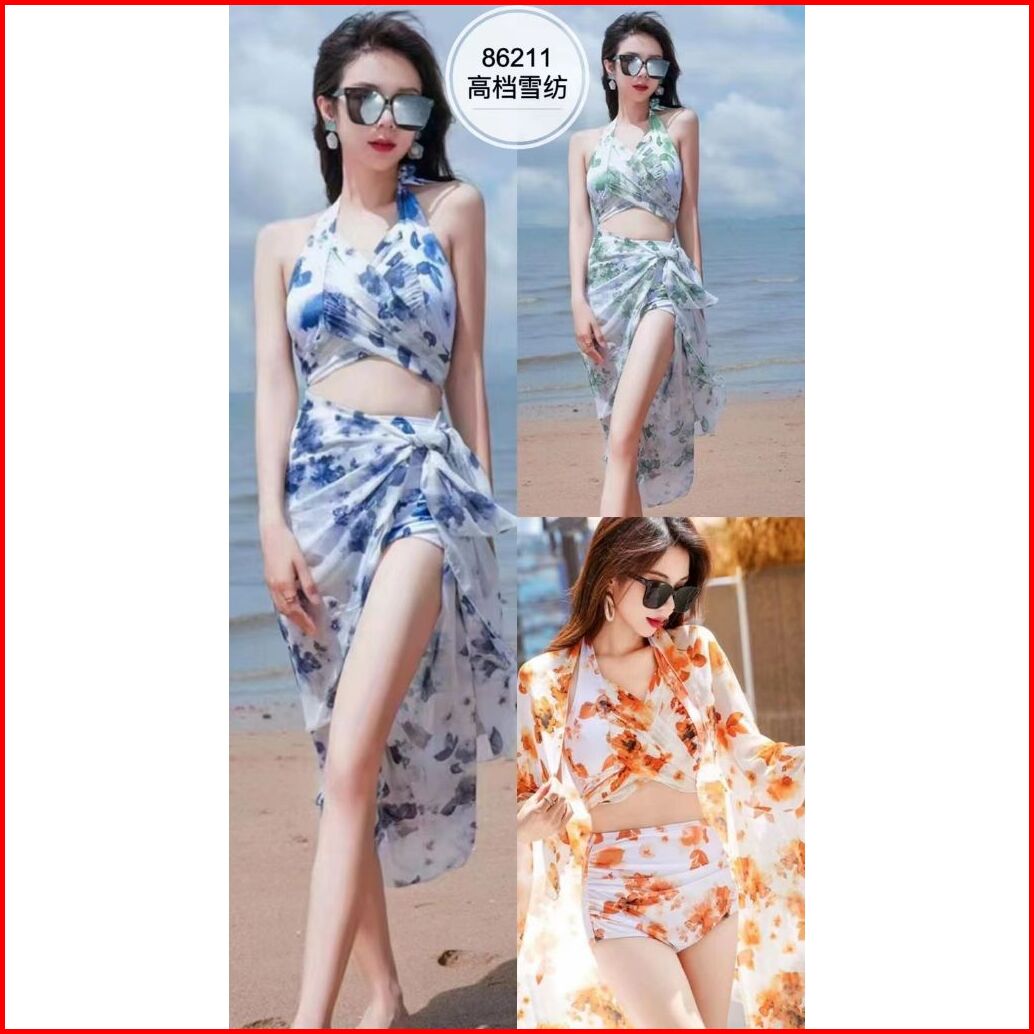 All In One-034 Baju Renang Set Bikini Swimsuit Wanita Motif Floral