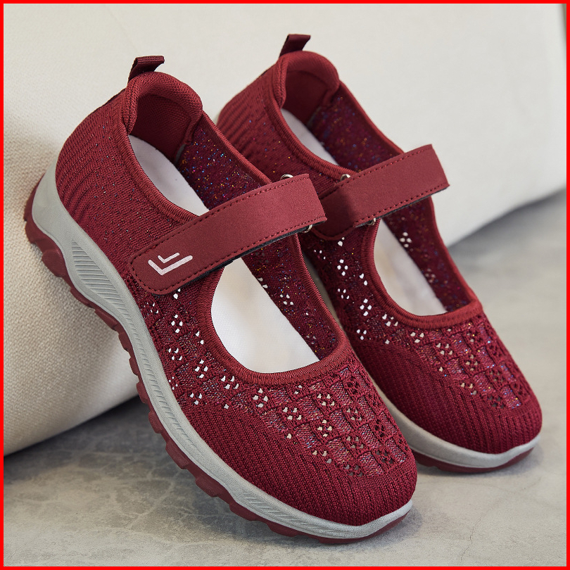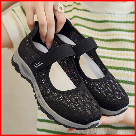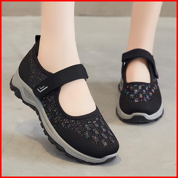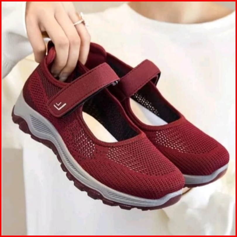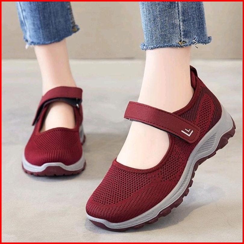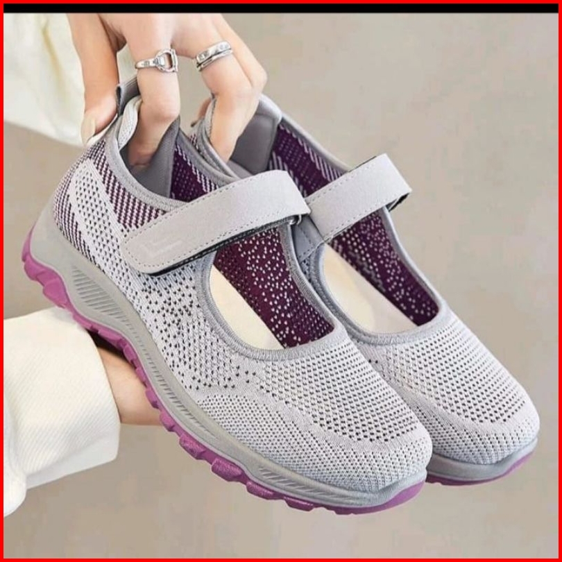 Sepatu Sneakers Wanita Import Tali Strap Velcro Anti Slip Sol Abu Tahan Air Kotak Box