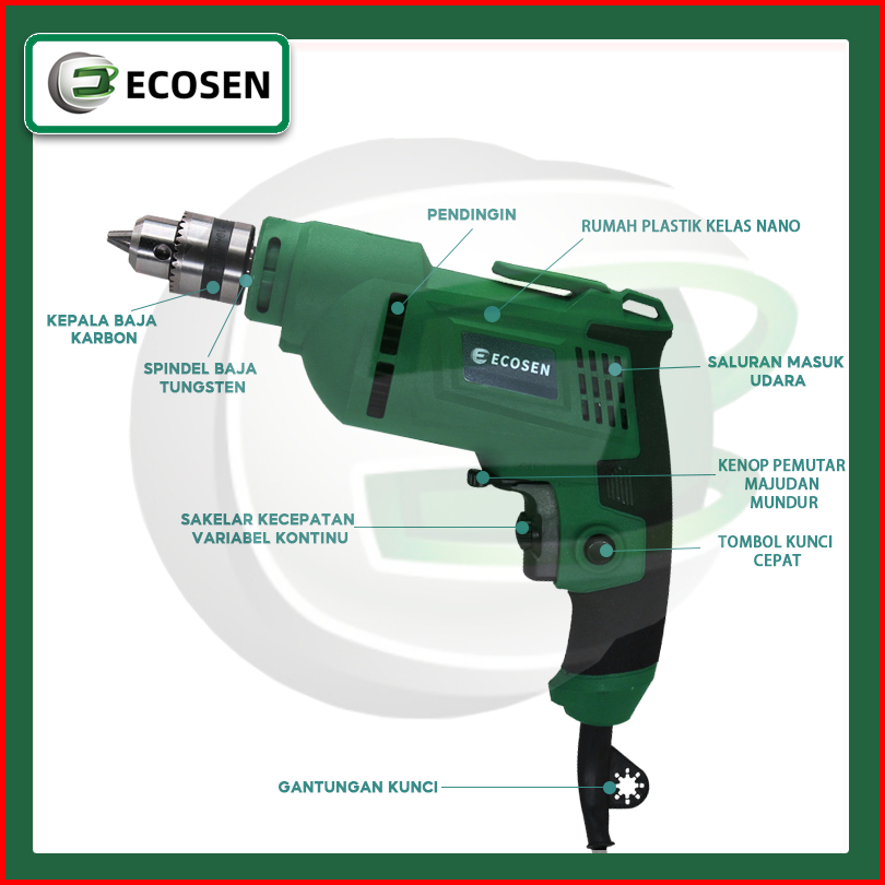 Ecosen Mesin Bor Listrik 10mm Bolak Balik Electric Drill Mesin Bor Kayu Dan Besi Daya Tinggi 800w Mesin Bor Listrik Port