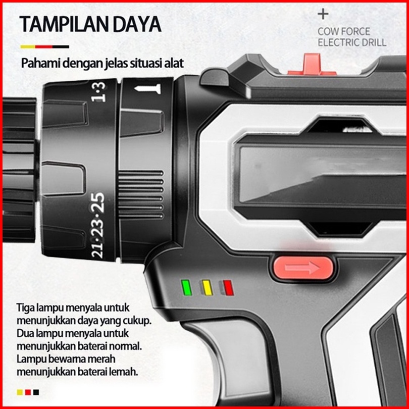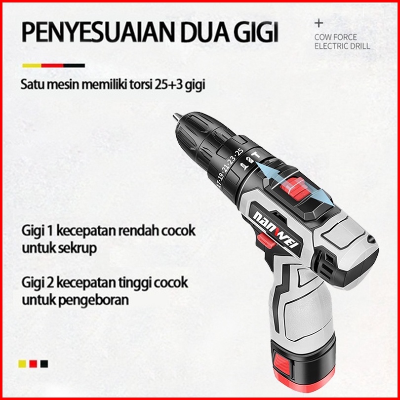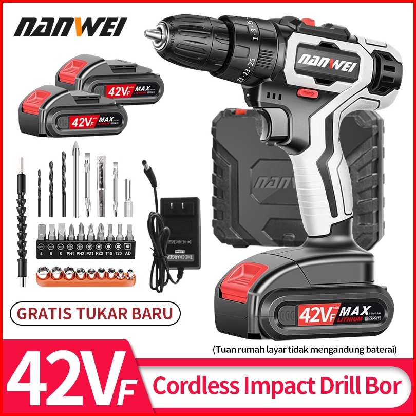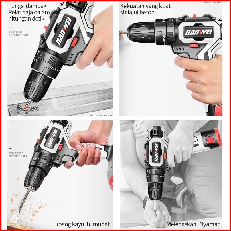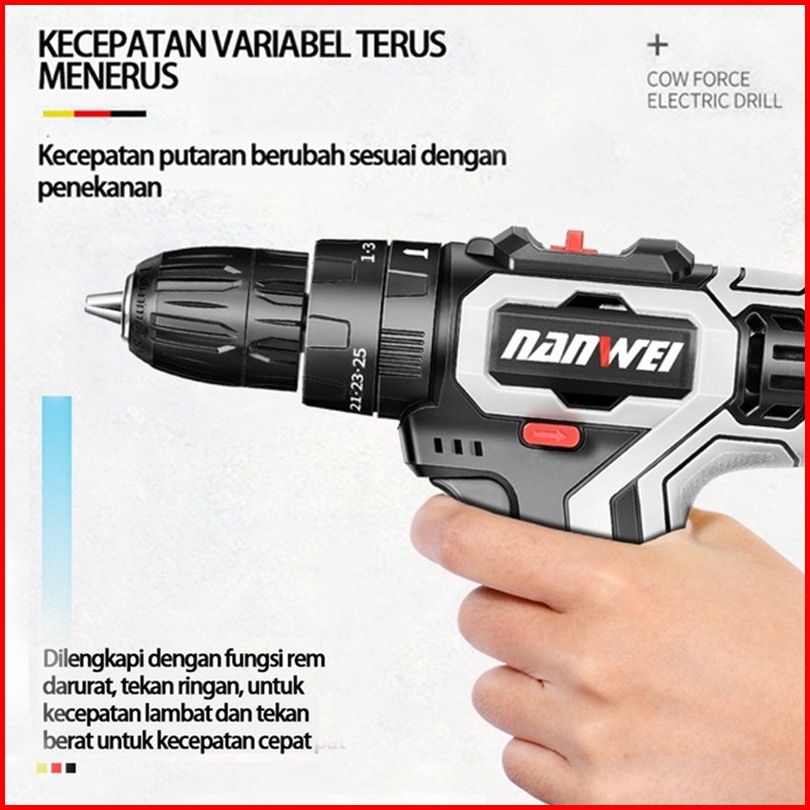 Nanwei - Mesin Bor Cordless Bor Baterai Bor Listrik Beton Besi Kayu Full 21vf Set Pilihan Bor Tanpa Kabel