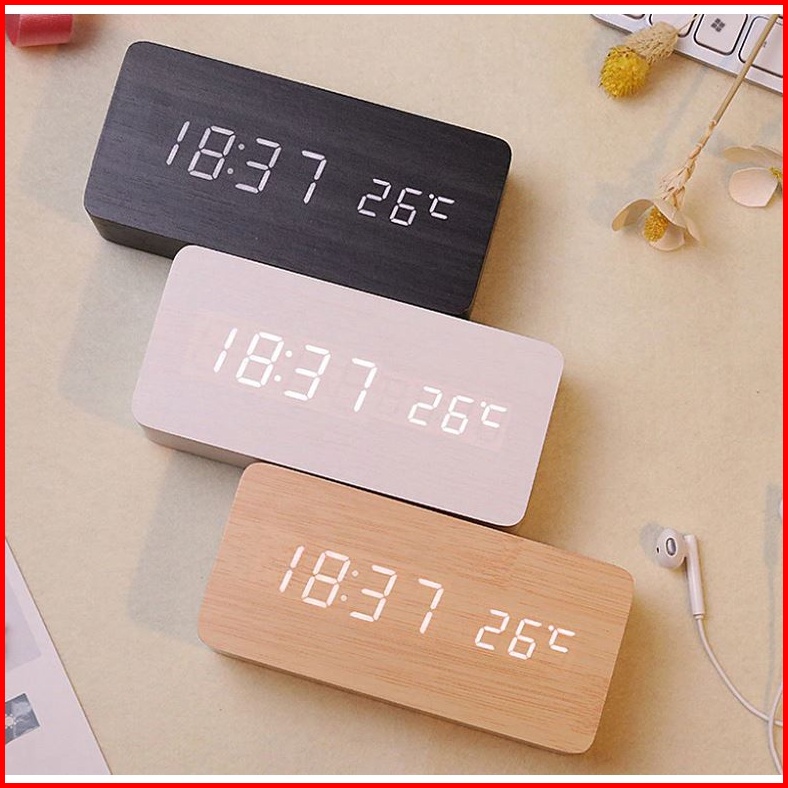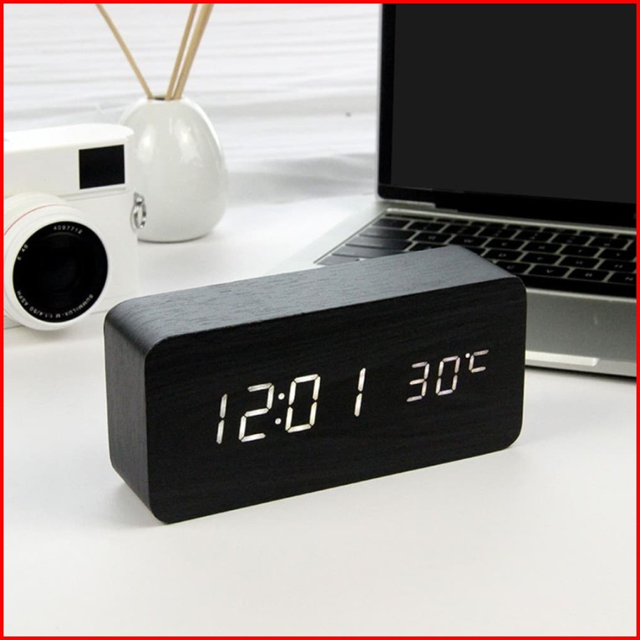 Jd-03 Jam Meja Digital Motif Kayu Digital Led Weker Desain Wood Alarm Led Clock Waker Suhu Temperatur