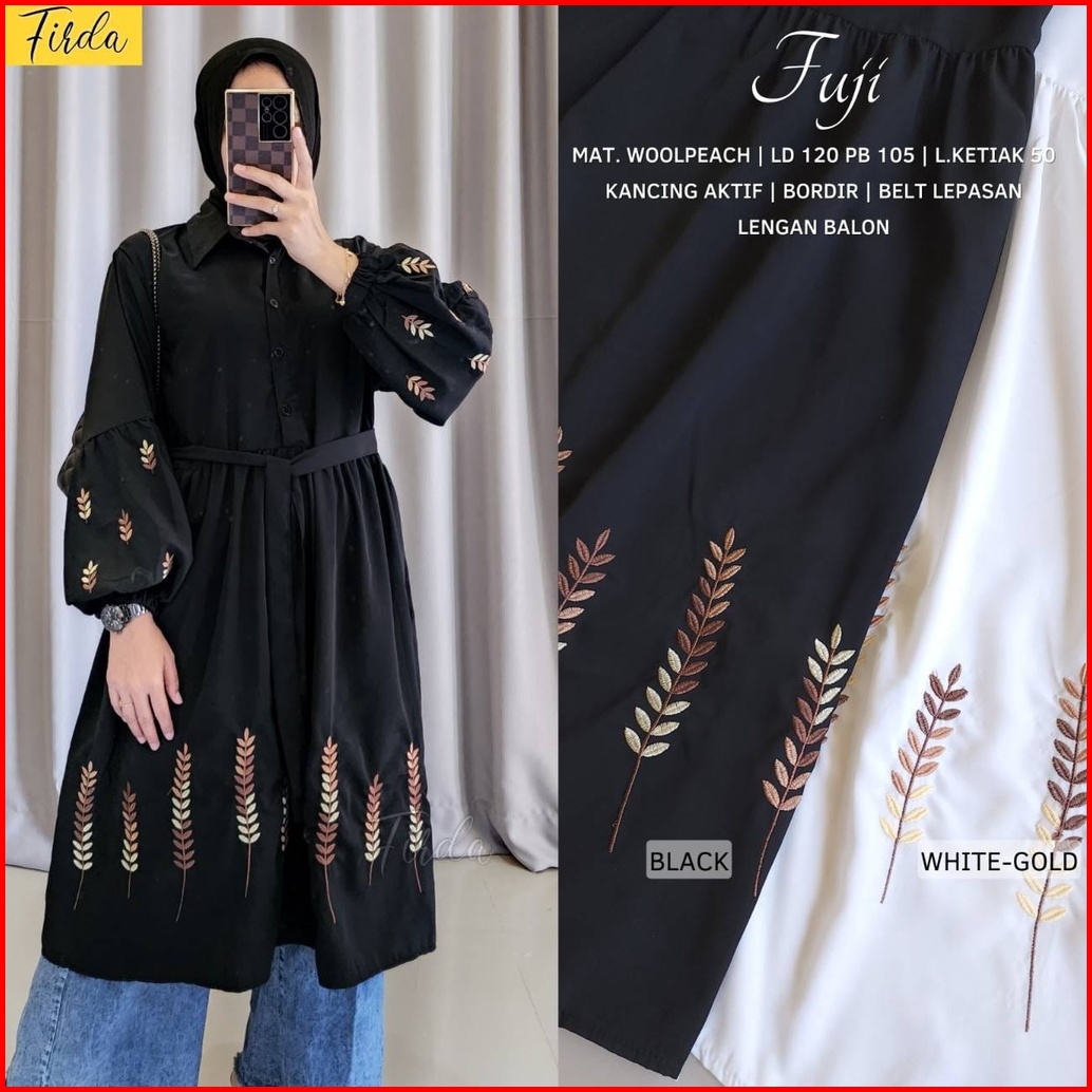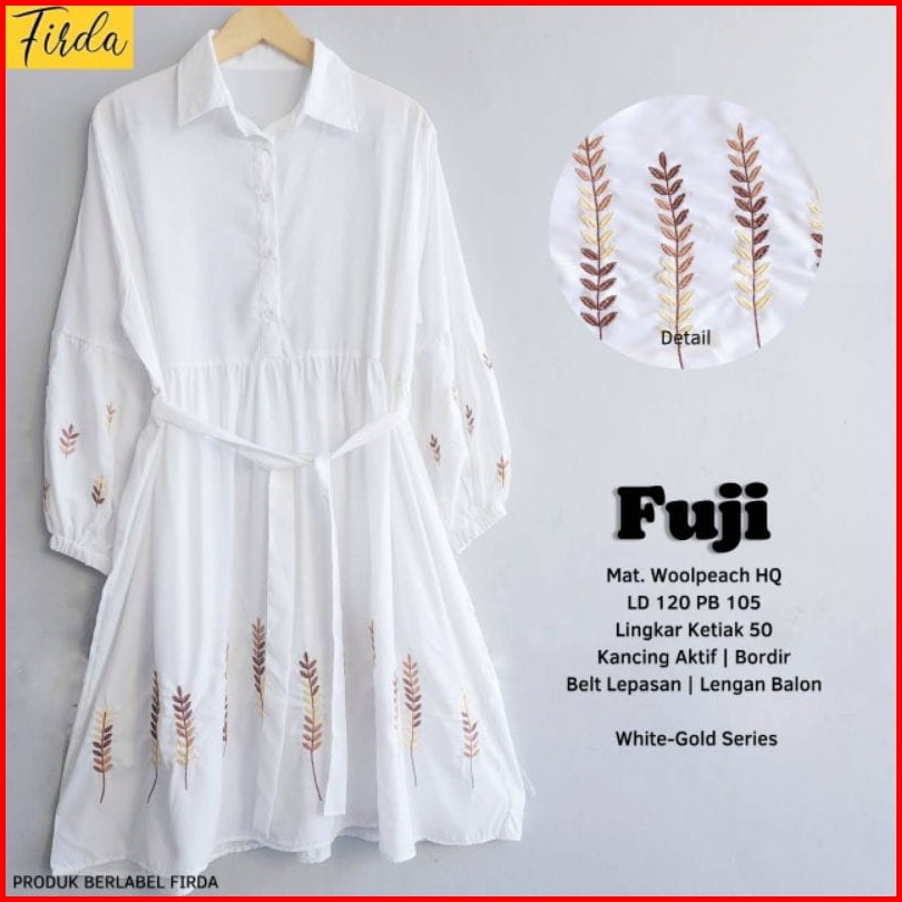 Fuji Tunik Firda Atasan Wanita Lengan Panjang Warna Putih Jumbo Bigsize Ld 110 120 Xxxl Bahan Wollpeach Import Bordir Bu