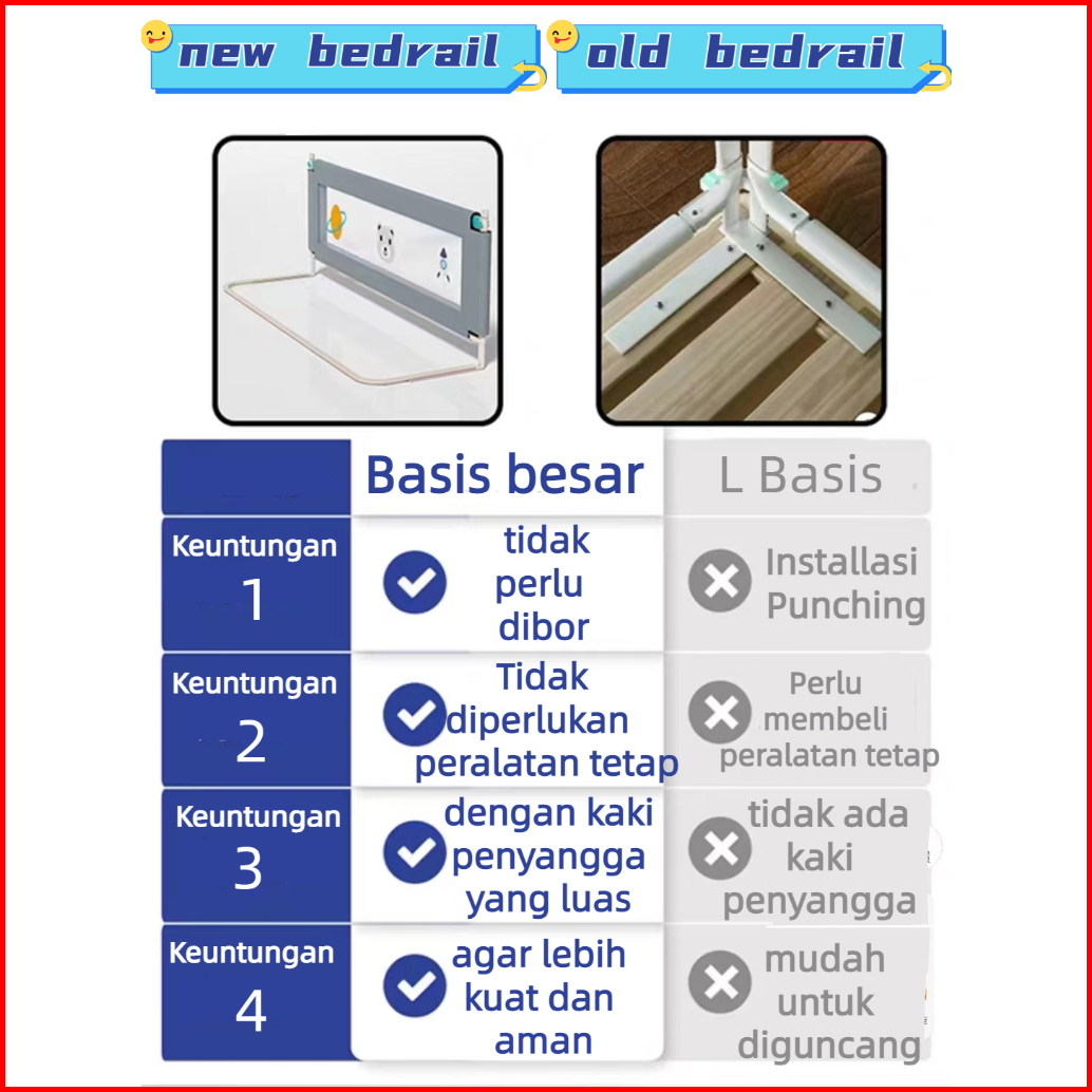 Dipasang Tanpa Perlu Berlubang Tidak Memerlukan Tempat Tidur Bayi Model Terbaru Baby Bedrail Bedguard Fence Pembatas Pen