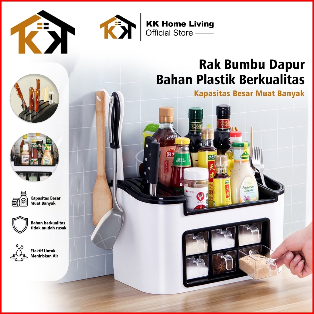 Kk Rak Penyimpanan Bumbu Dapur Dengan 6 Laci Bonus 6pcs Sendok Tempat Pisau Multifunctional Kitchen