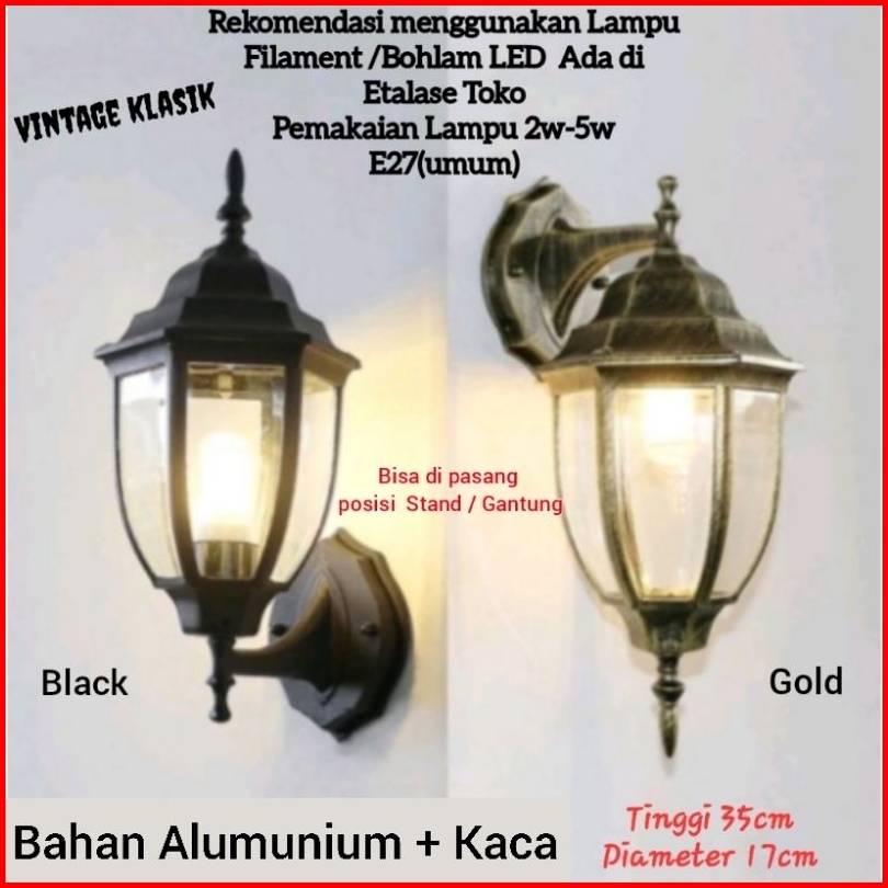 Lampu Dinding Outdoor Model Vintage Klasik Waterproff Teras Taman Balkon-