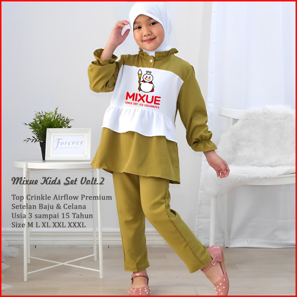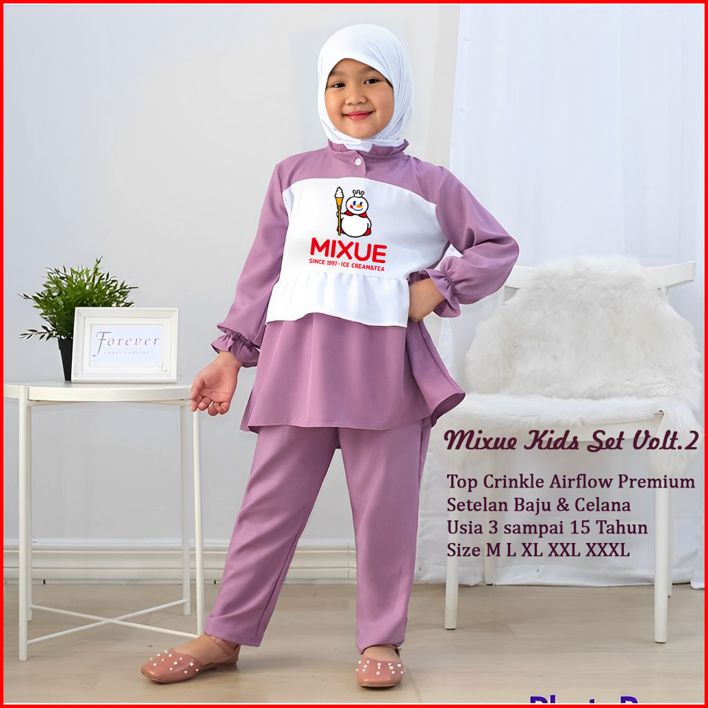 Tebus Harga Murah One Set Es Krim Lucu Setelan Anak Perempuan Muslim Bahan Cringkel Premium Usia 3-15thun