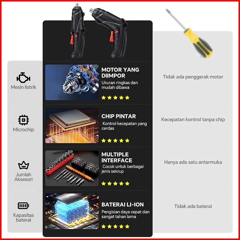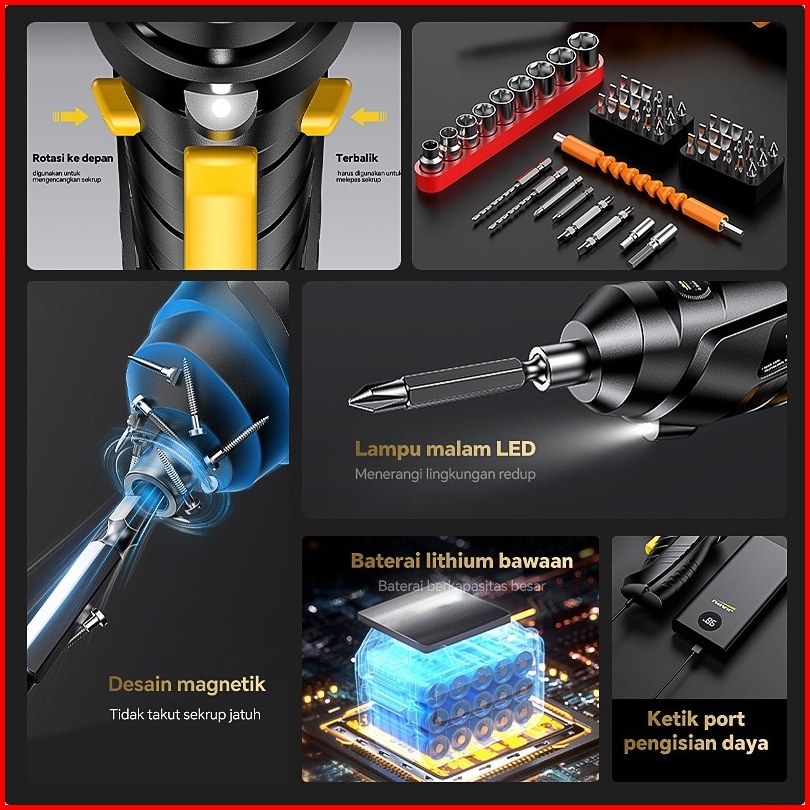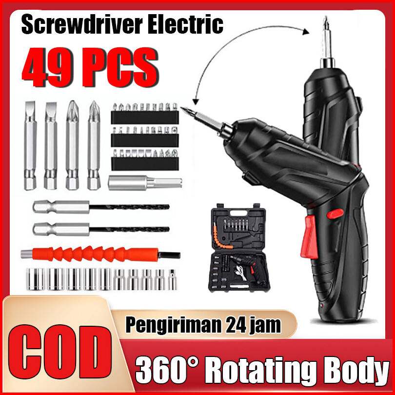 Cordless Screwdriver 4.2 V Baterai Impact Cordless Drill 49 Pcs Set Bor Mini Screwdriver Baterai Mesin Bor Set 49 Obeng