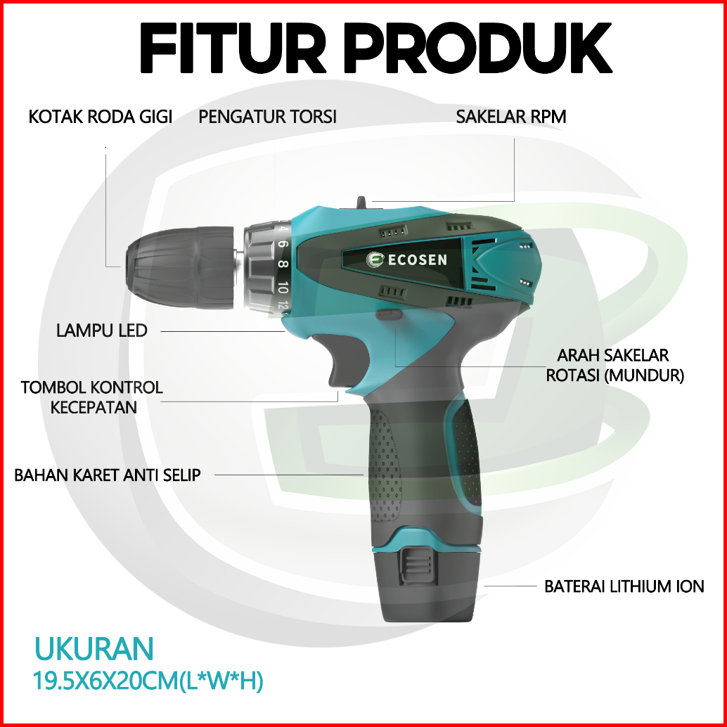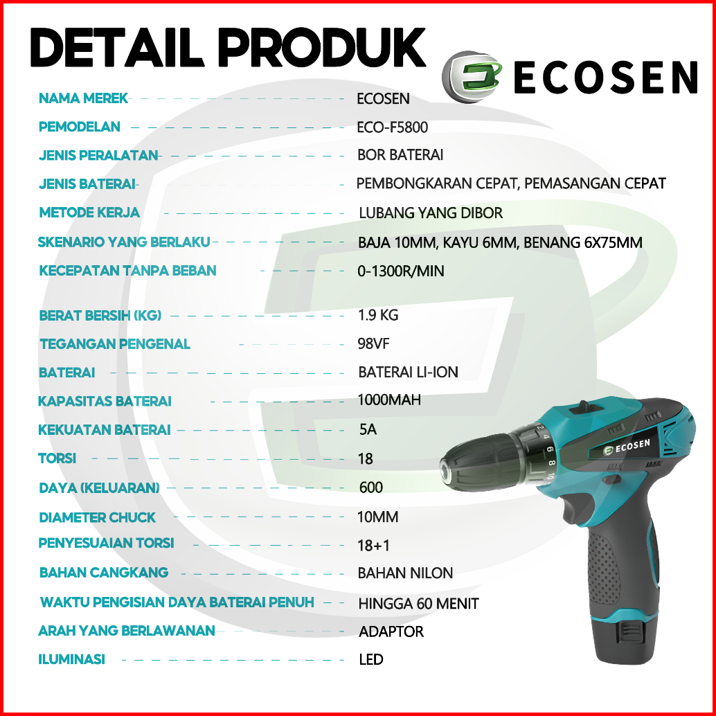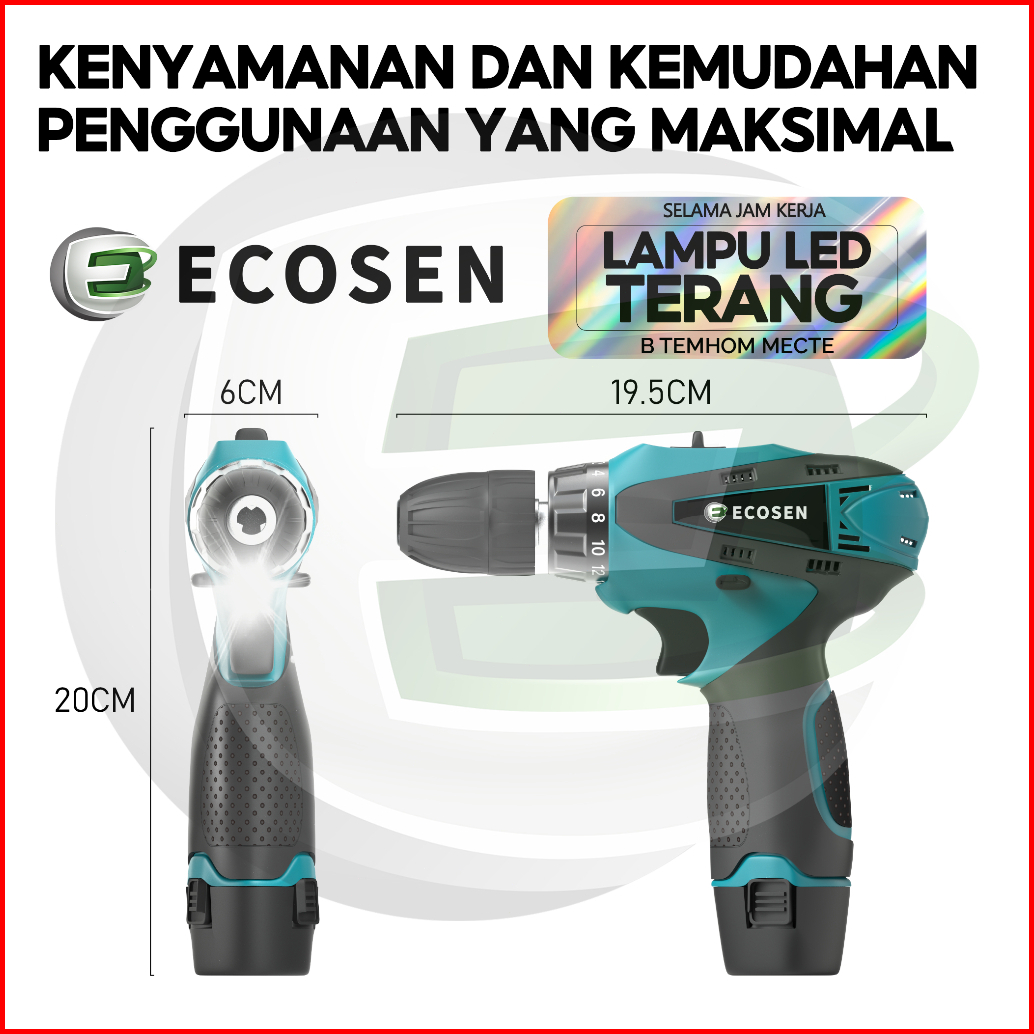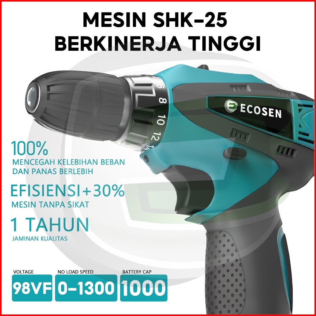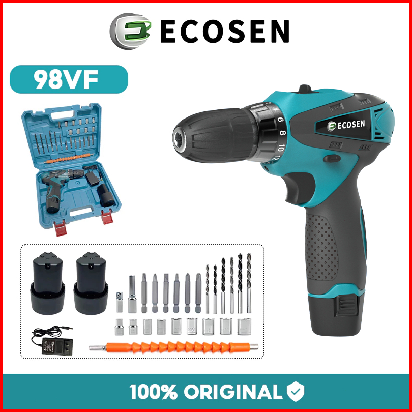 Ecosen 98v Mesin Bor Tangan Bor Listrik Bor Cas Cordless Drill Battery