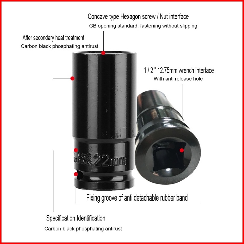 Stok Tersedia 8-24mm Kunci Sok Set Mata Kunci Impact Impact Socket Set Mpact Tekiro Batrei 10pcs 1 2 Inch Panjang Mencap
