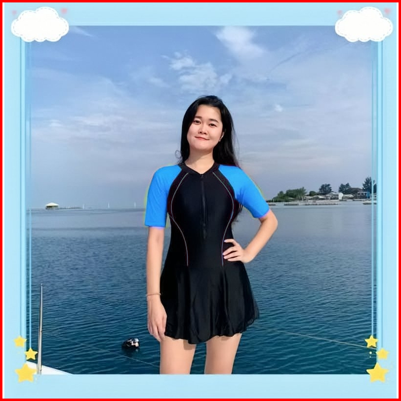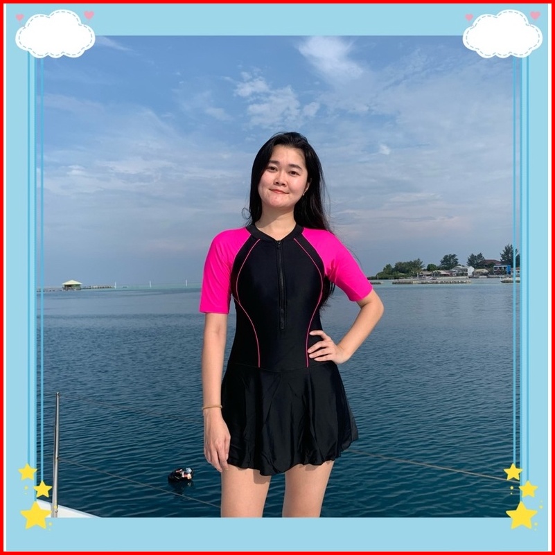 39073 39076 Baju Renang Rok Murah Wanita Lengan Pendek Dewasa Pakaian Renang Antiuv Nyambung