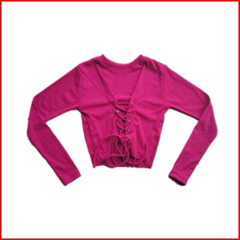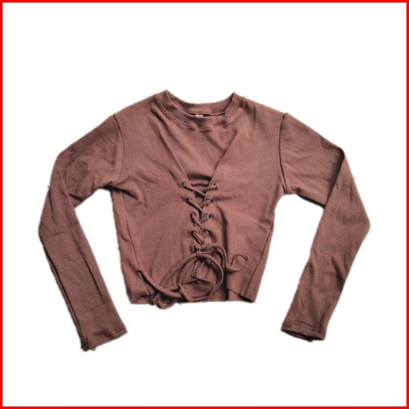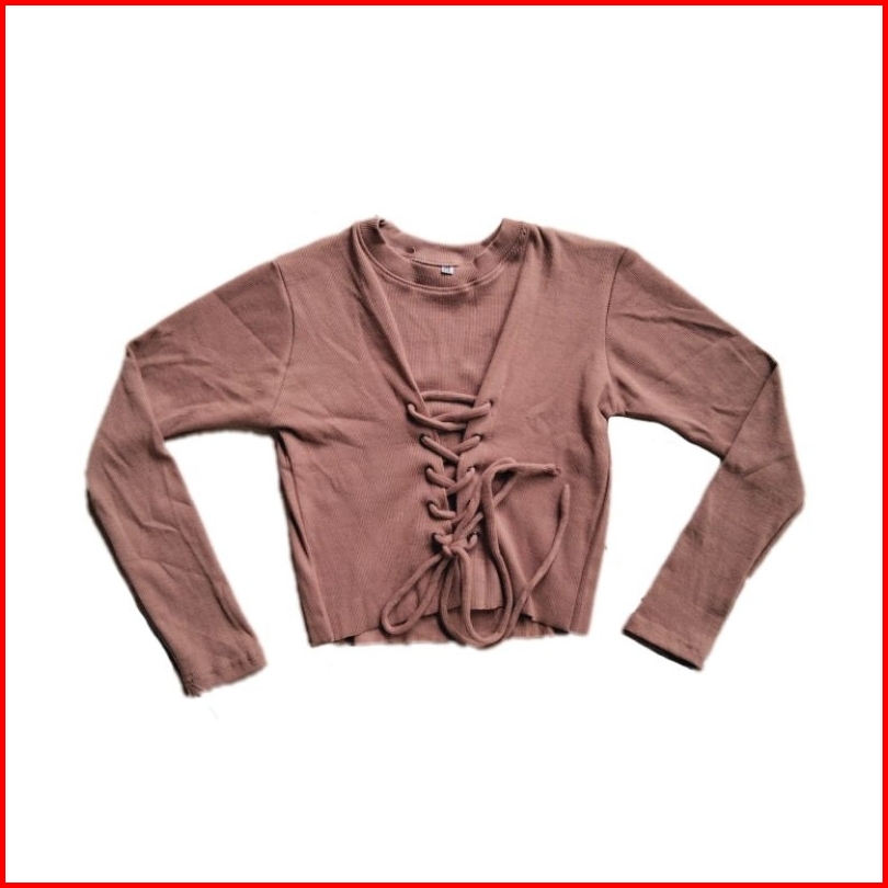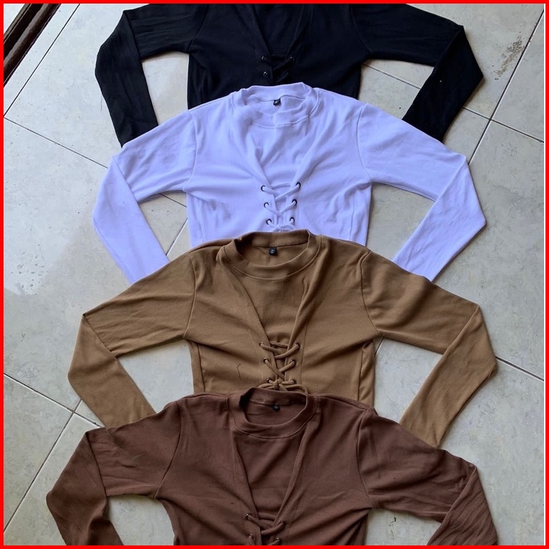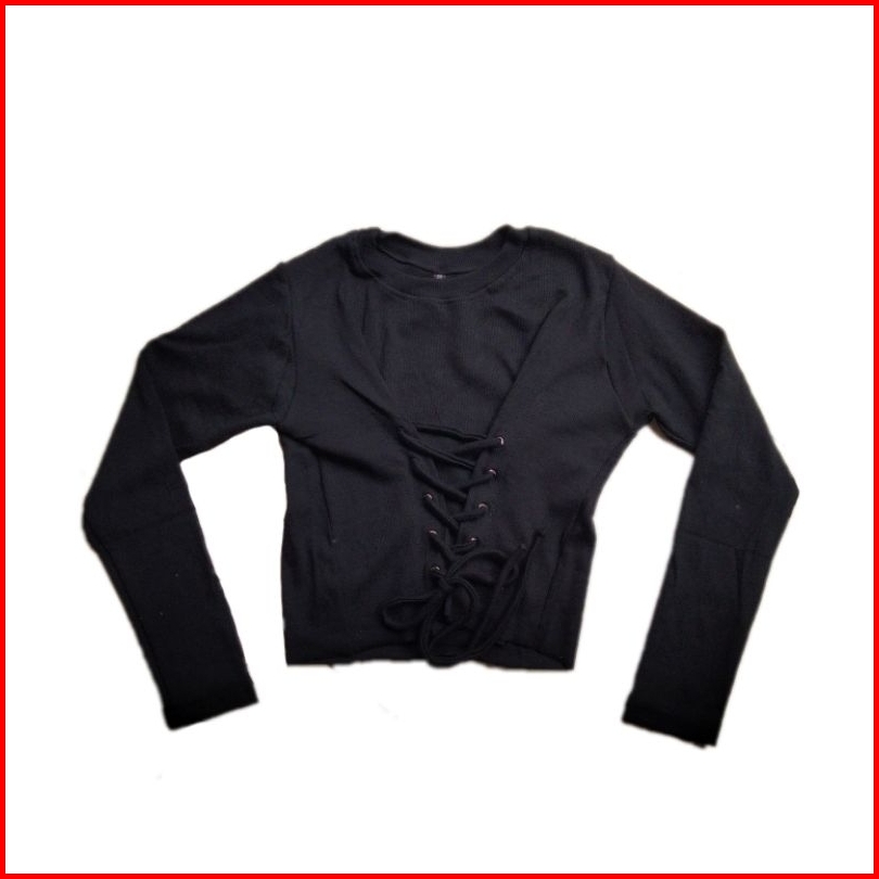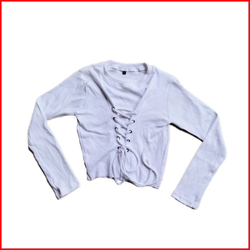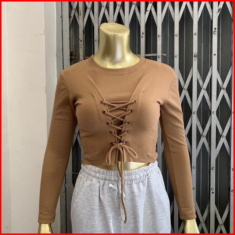 Lvl Crop Top - Rena - Lengan Panjang - Lace Up Top - Eyelets - Atasan Wanita - Fashion Wanita