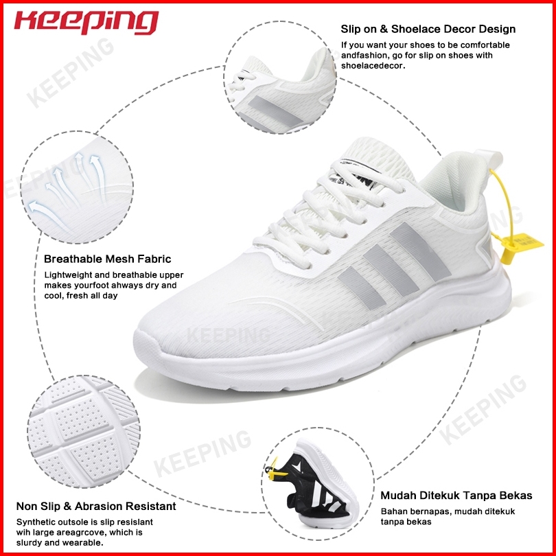 Keeping Sepatu Sneakers Pria Wanita Putih Sepatu Ringan Cowok Cewek Sepatu Olahraga Lari Casual Joging Sport Running Sho