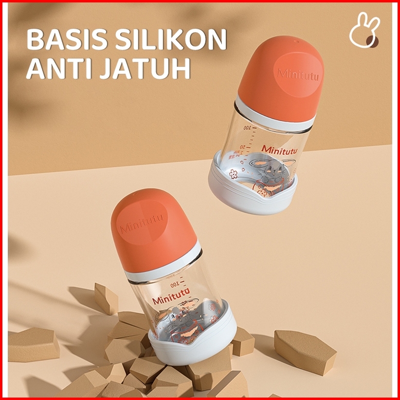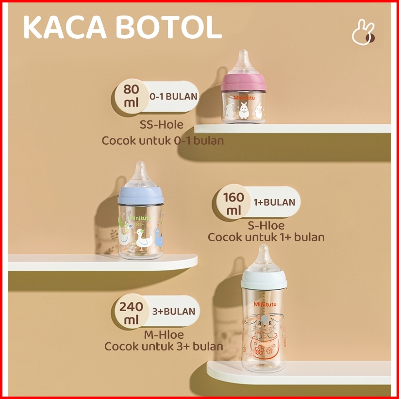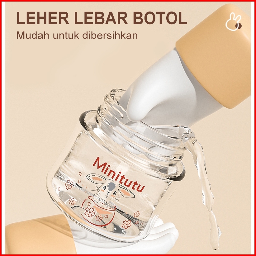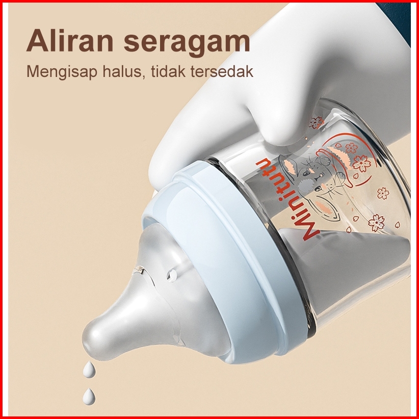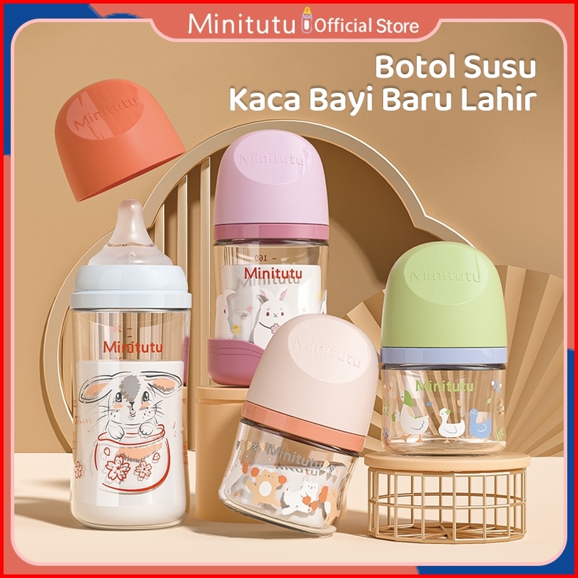 Minitutu Penggambaran Warna-warni Botol Susu Kaca Untuk Bayi Baru Lahir Seri 80ml 160ml 240ml Dengan Puting Antikolik