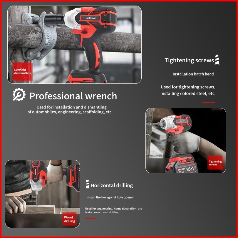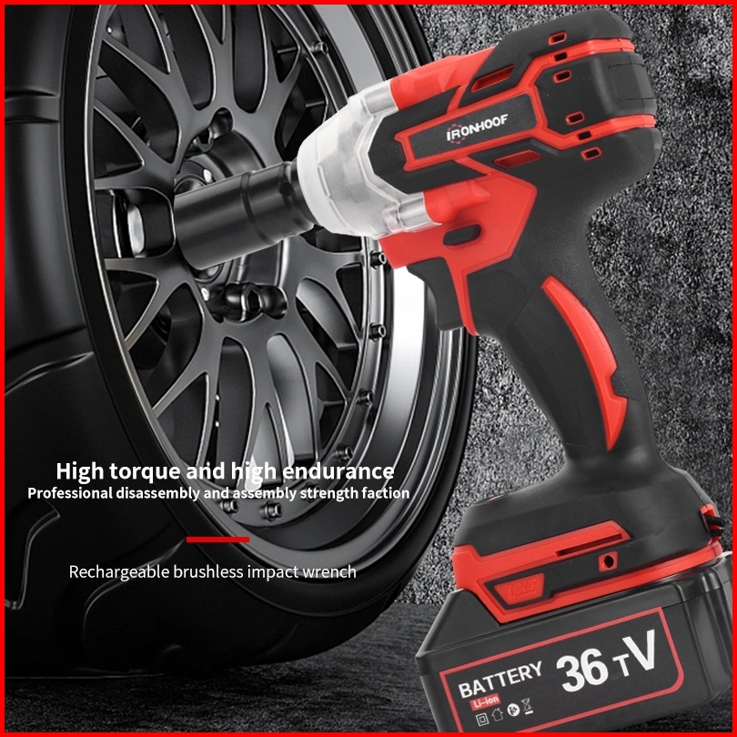 Ironhoof Impact Wrench Brushless 420n.m Mesin Bor Baterai Impact Baterai 36v Impek Baterai