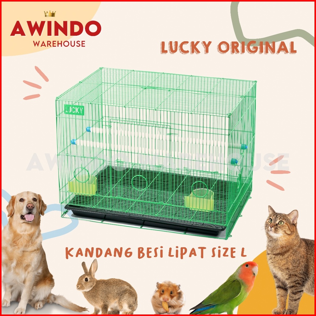 Kandang Kucing Besi Lipat Size L 60x45x50 Rumah Pet Cargo Anjing Kelinci Tupai Lucky Ori 568