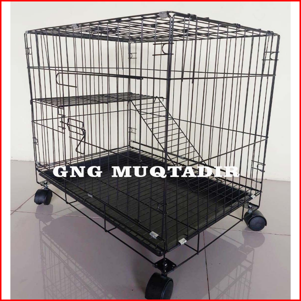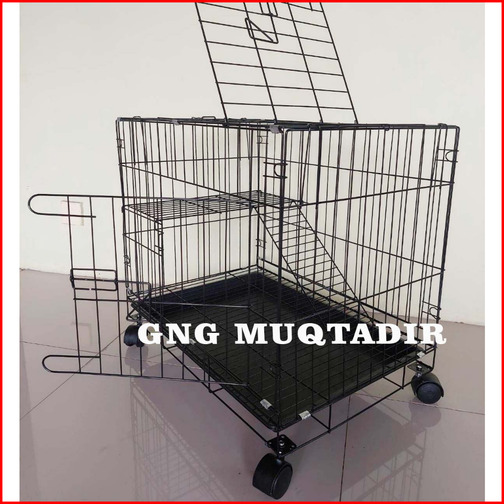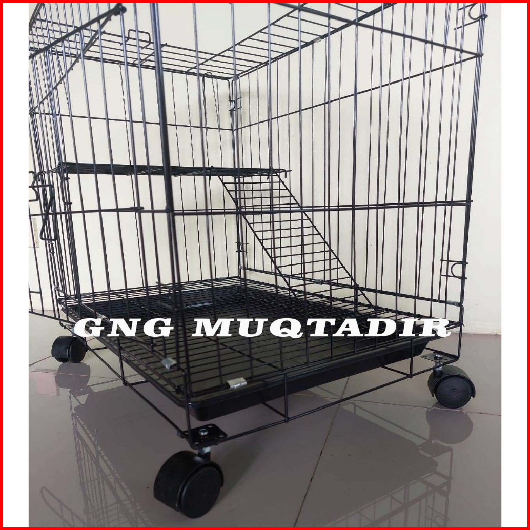 Kandang Kucing Tingkat Plus Roda Bahan Besi Tebal Dan Kokoh Cat Coating Tahan Terhadap Cuaca Ukuran 60x40x50 Cm