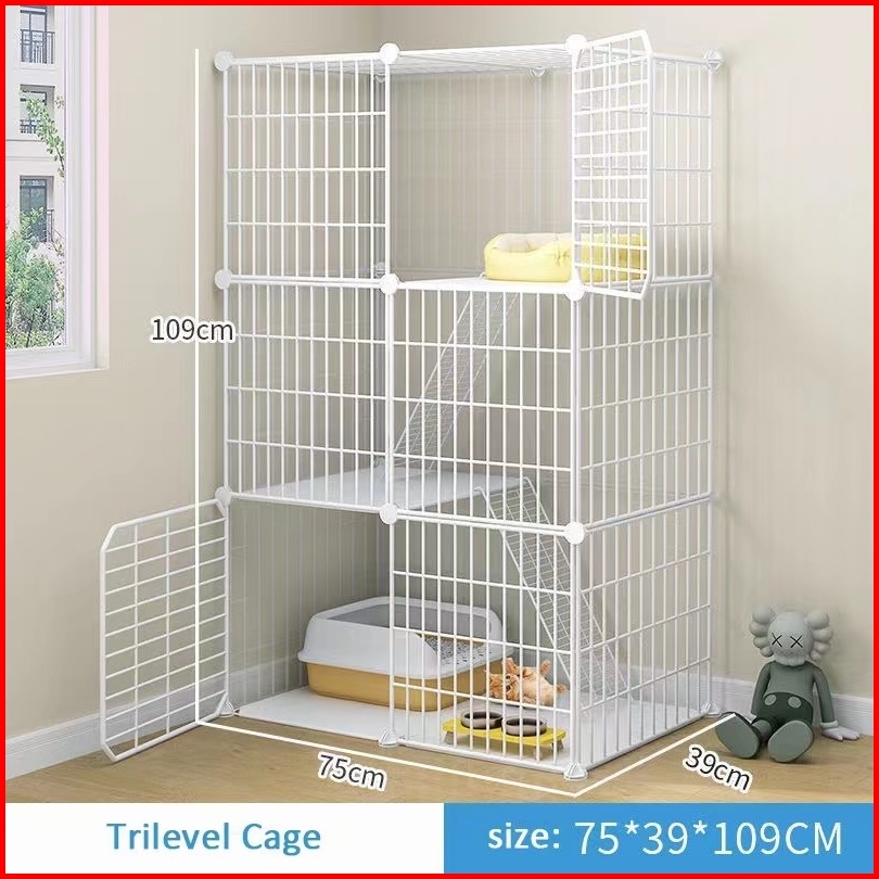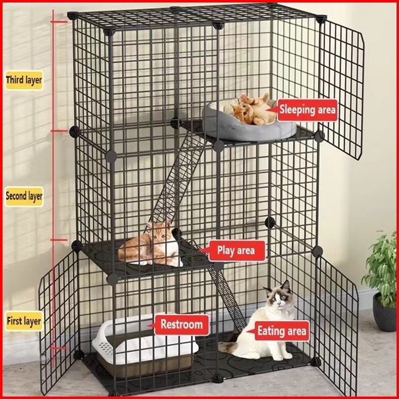 Kandang Kucing 3 Tingkat Set Kandang Kucing Kandang Anjing Pagar Kucing Anjing Pet Cage Pagar Besi Diy