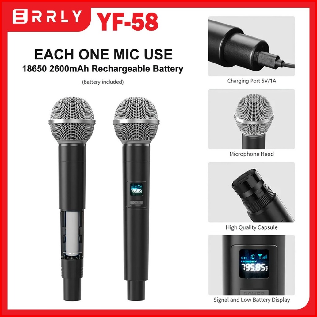 Errly Mic Karaoke Wireless Microphone Karaoke Yf58 Yf58s With Receiver System Led Display Mic Karaoke Genggam