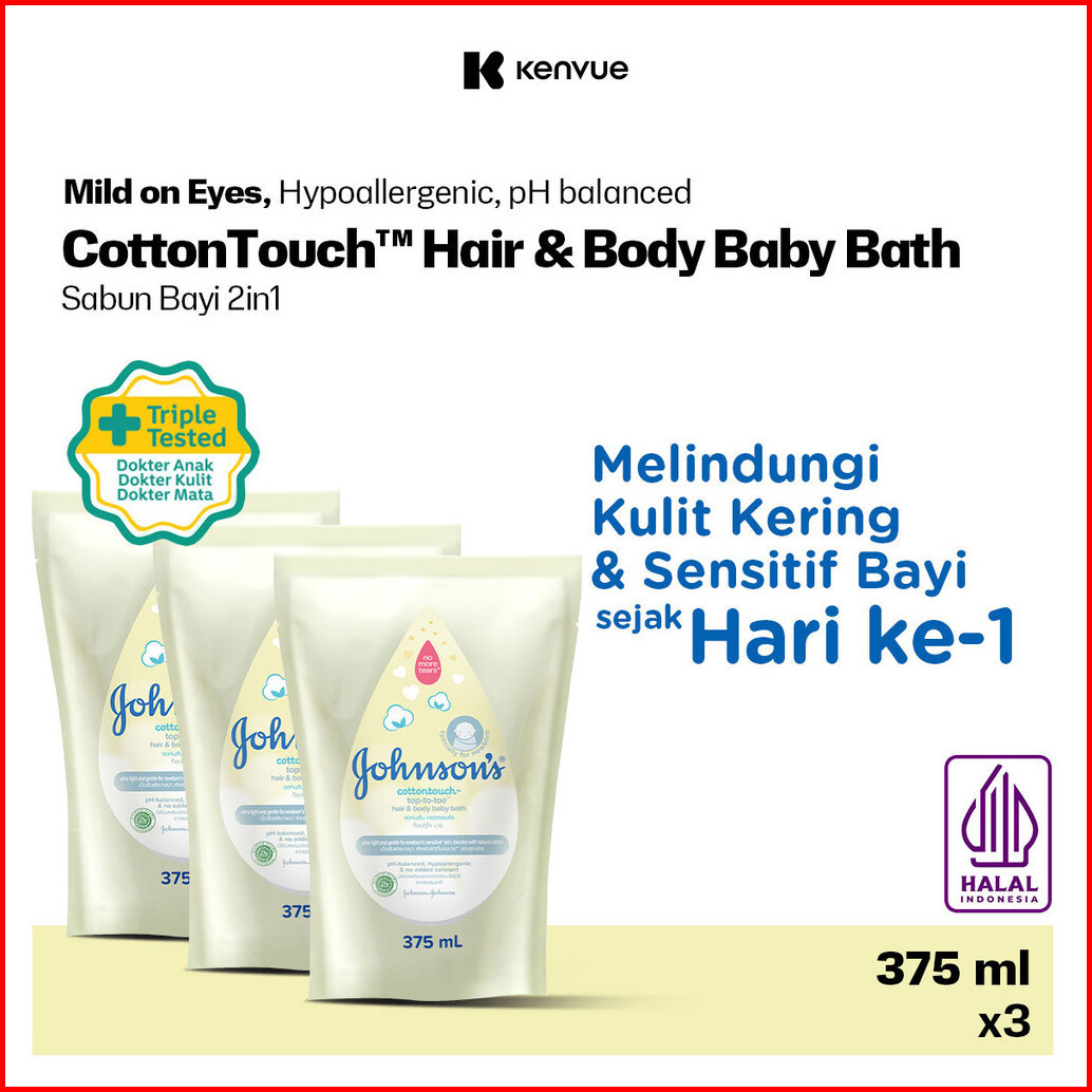 Johnson S Cottontouch Top-to-toe Hair Body Baby Bath - Sabun Bayi 2in1 Refill 375ml - 3 Pcs