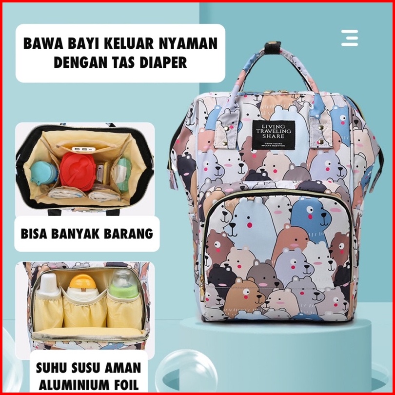 Tas Bayi 6010 - Tas Bayi Lts Cartoon Ransel Perlengkapan Travelling Popok Bayi Tas Diaper Bag - G1