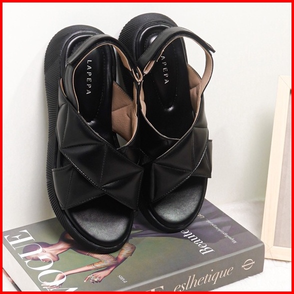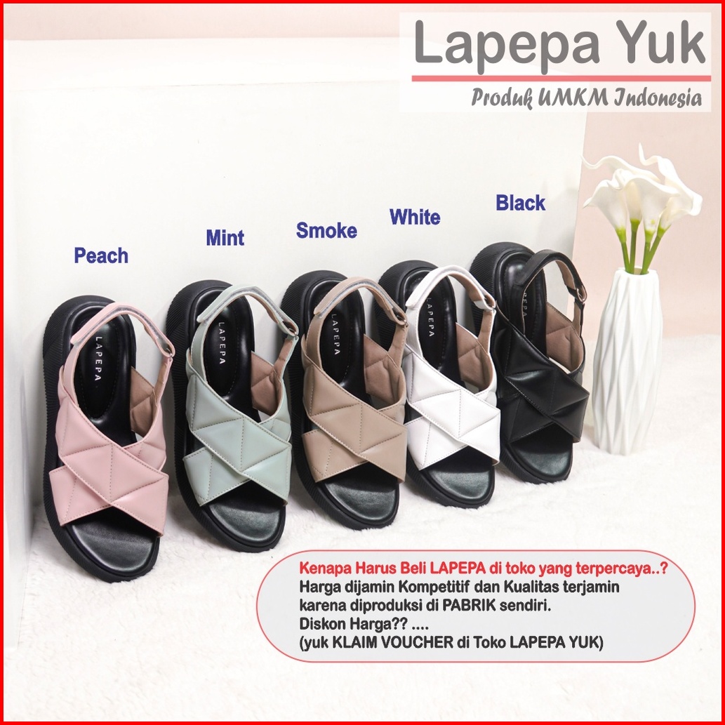 Lapepa Yuk - Sepatu Sandal Wanita Wedges Jovita Model Ban Dua Tali Strap Belakang Hak Tinggi Sole 4 Cm Spatu Sendal Gunu