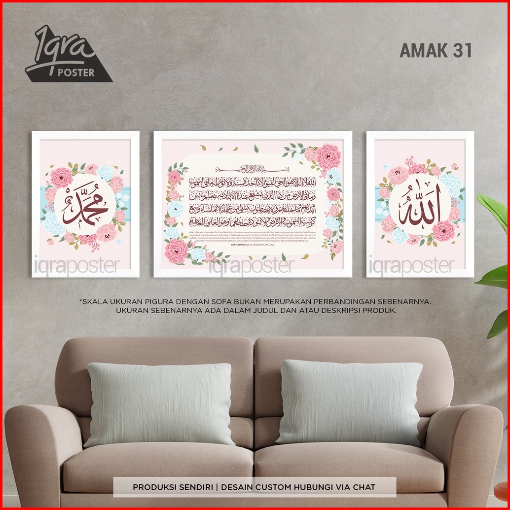Pigura Poster Kaligrafi - Allah Muhammad Ayat Kursi 31 Shabby Chic - Hiasan Dinding